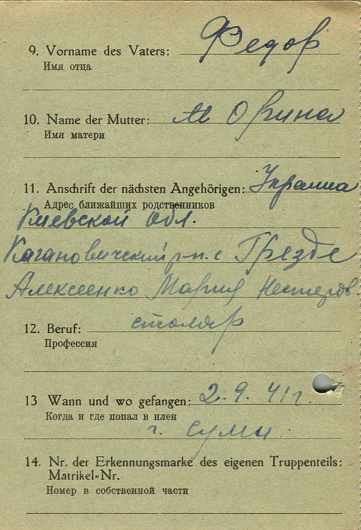 Военнопленные, трофейные карточки. Киевская обл.