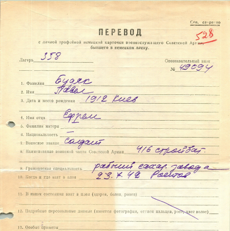 Военнопленные, трофейные карточки. Киевская обл.