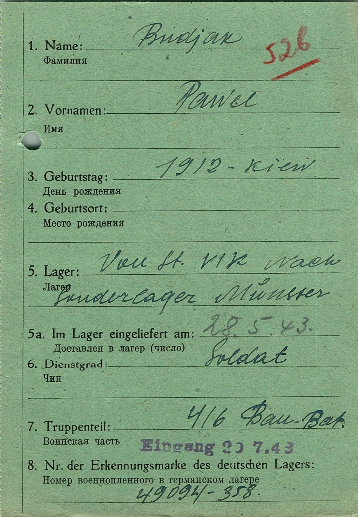 Военнопленные, трофейные карточки. Киевская обл.