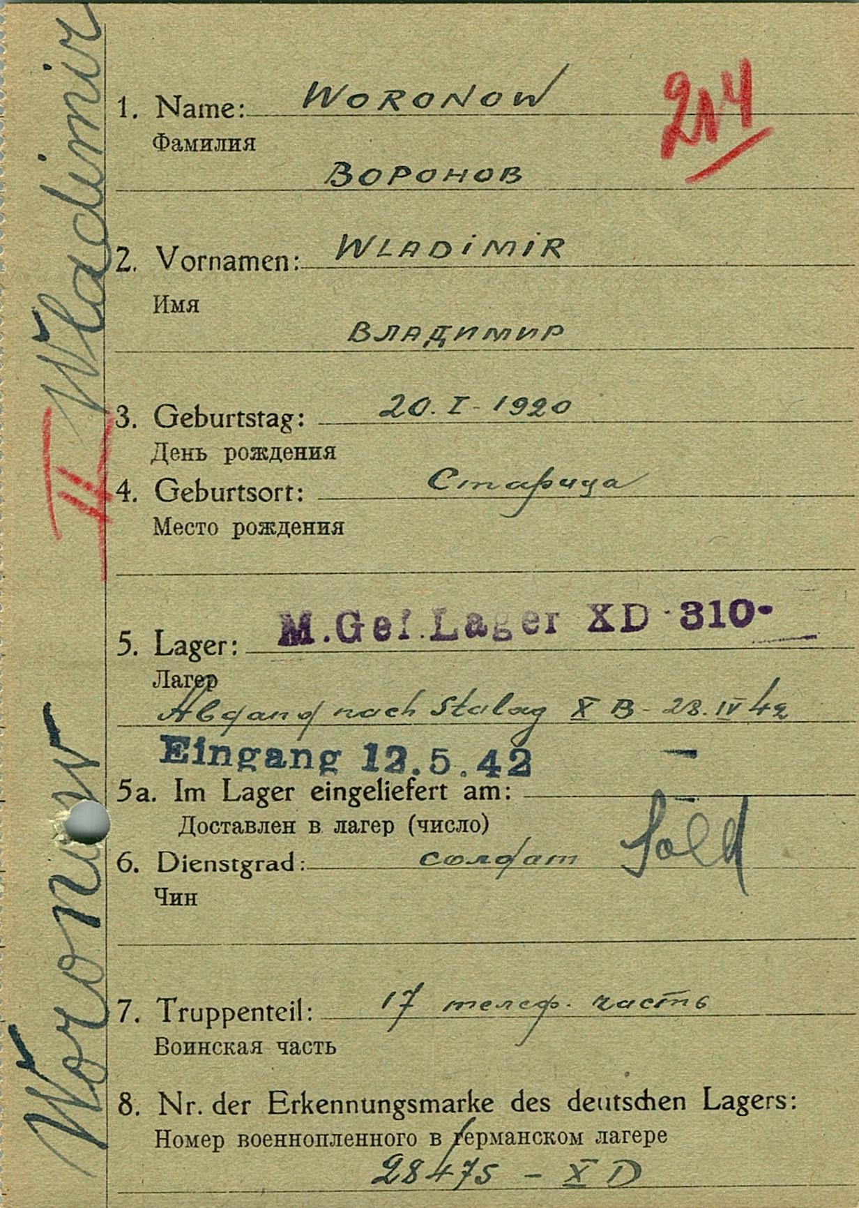 Военнопленные, трофейные карточки. Киевская обл.