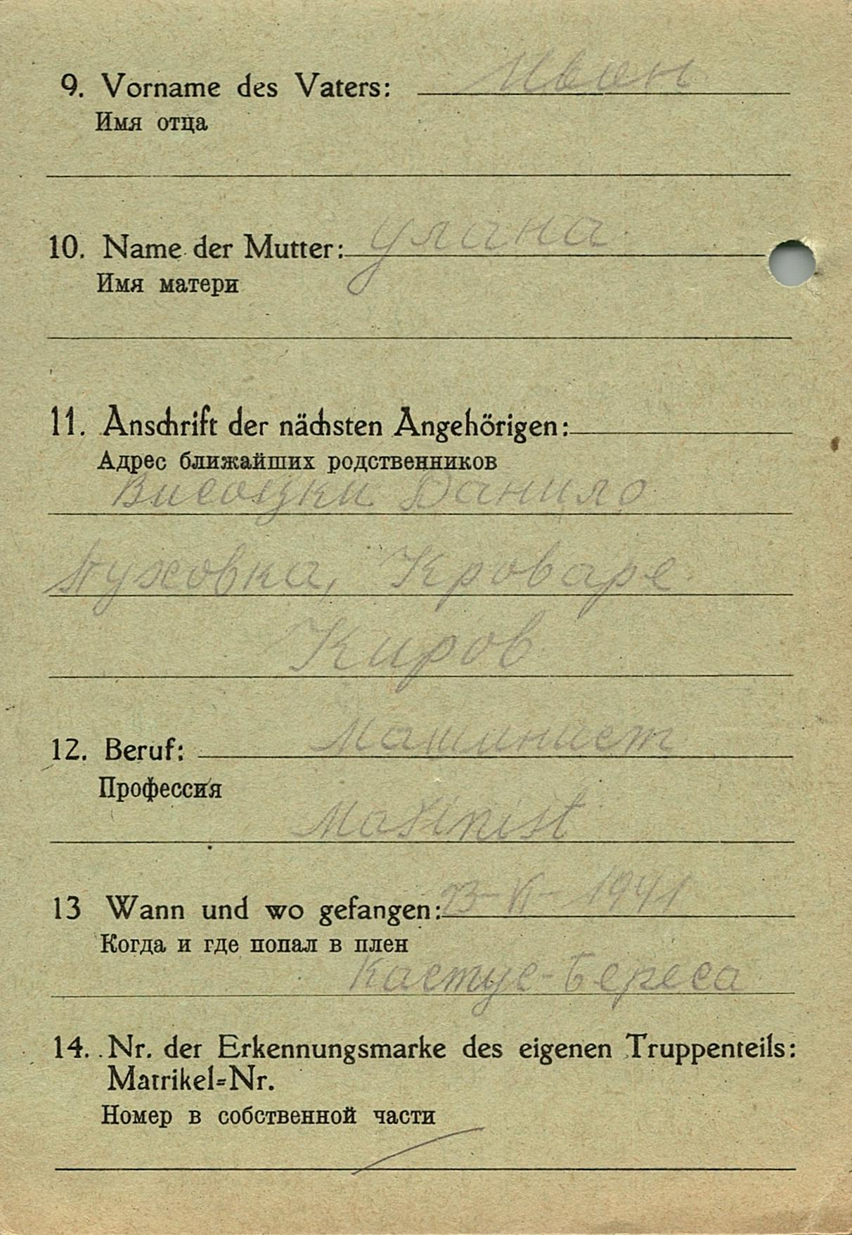 Военнопленные, трофейные карточки. Киевская обл.