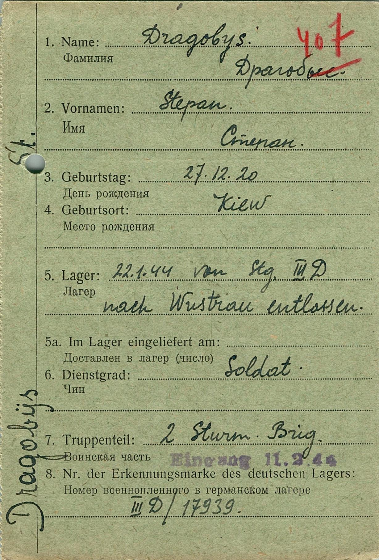 Военнопленные, трофейные карточки. Киевская обл.