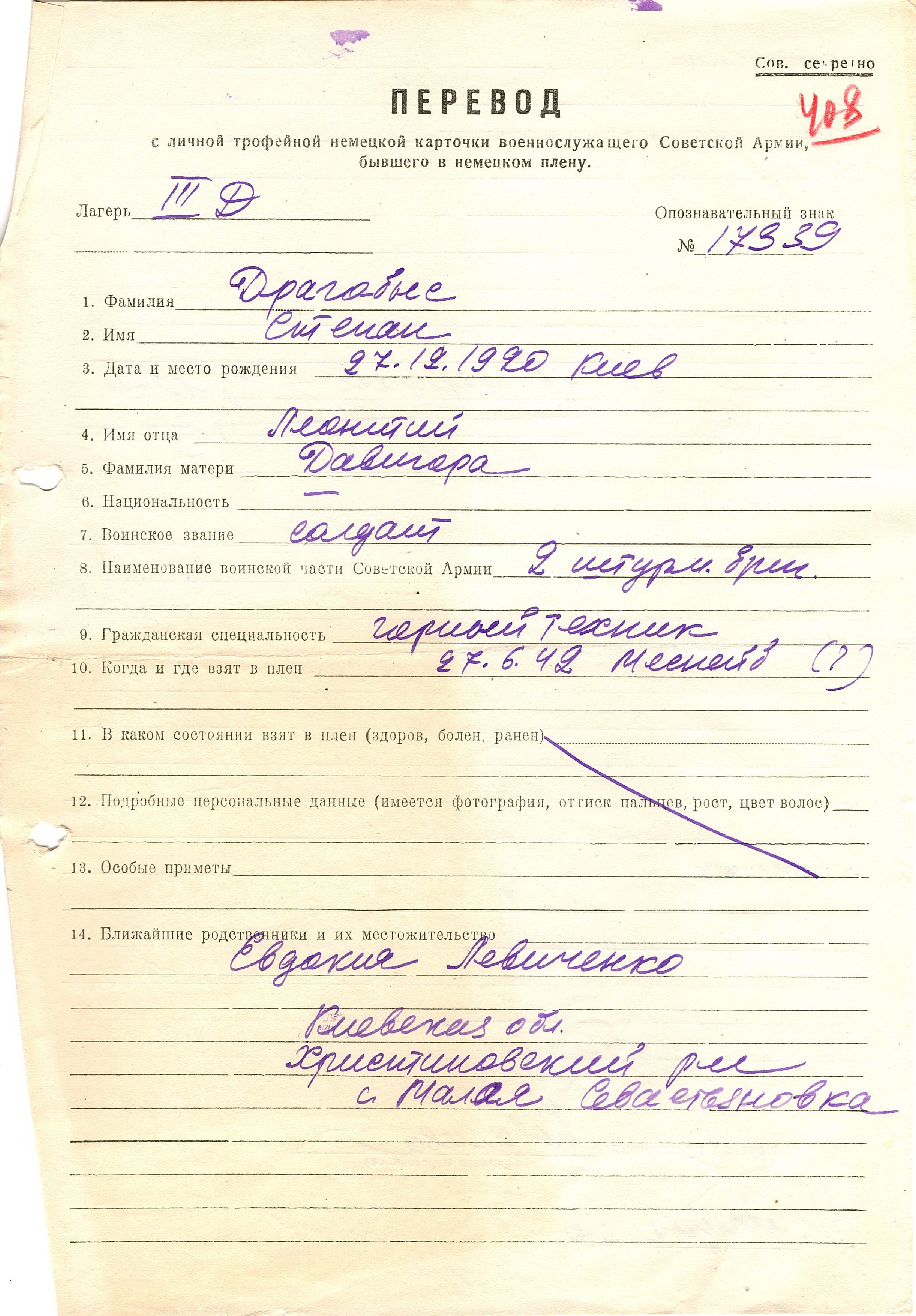 Военнопленные, трофейные карточки. Киевская обл.
