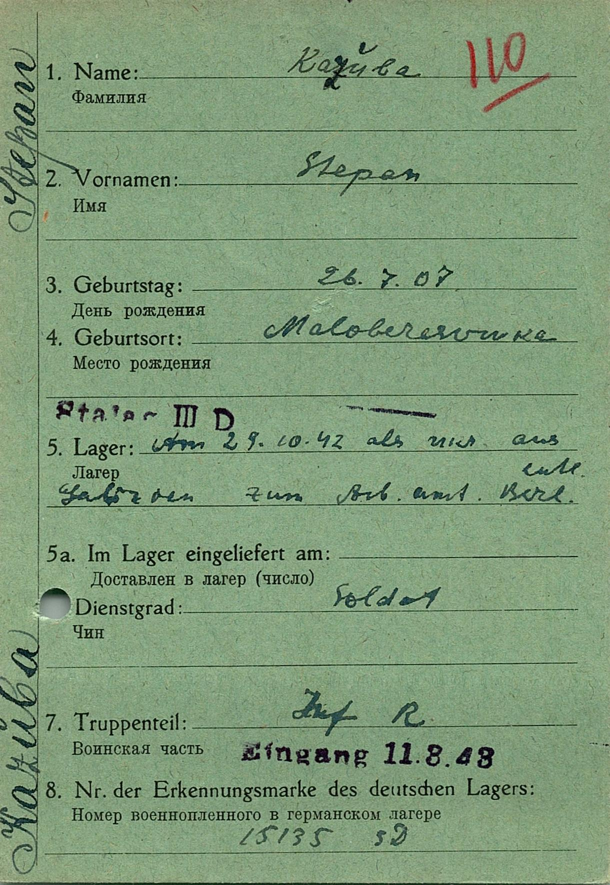 Военнопленные, трофейные карточки. Киевская обл.