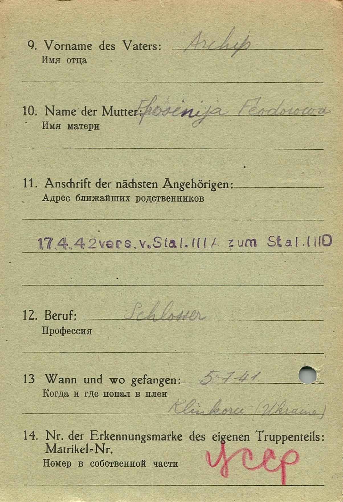 Военнопленные, трофейные карточки. Киевская обл.