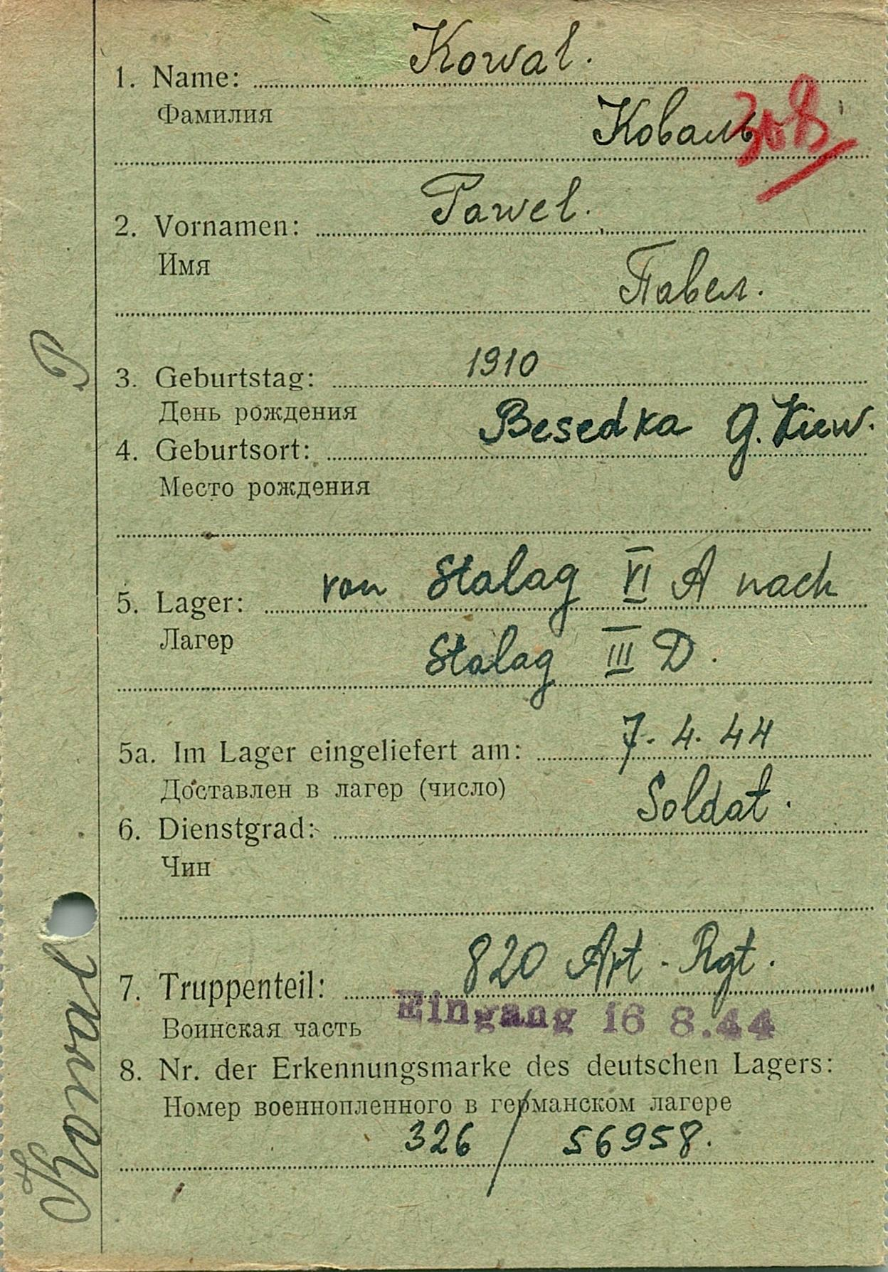 Военнопленные, трофейные карточки. Киевская обл.