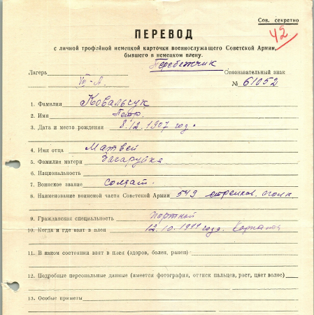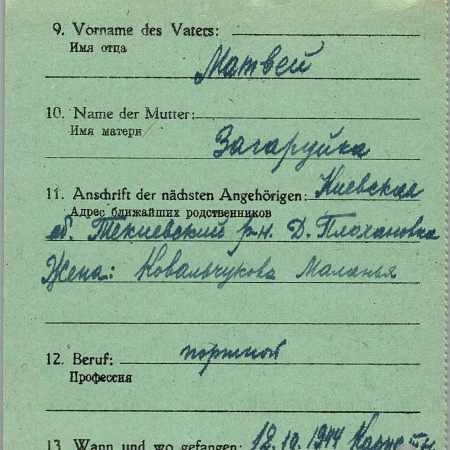 Военнопленные, трофейные карточки. Киевская обл.