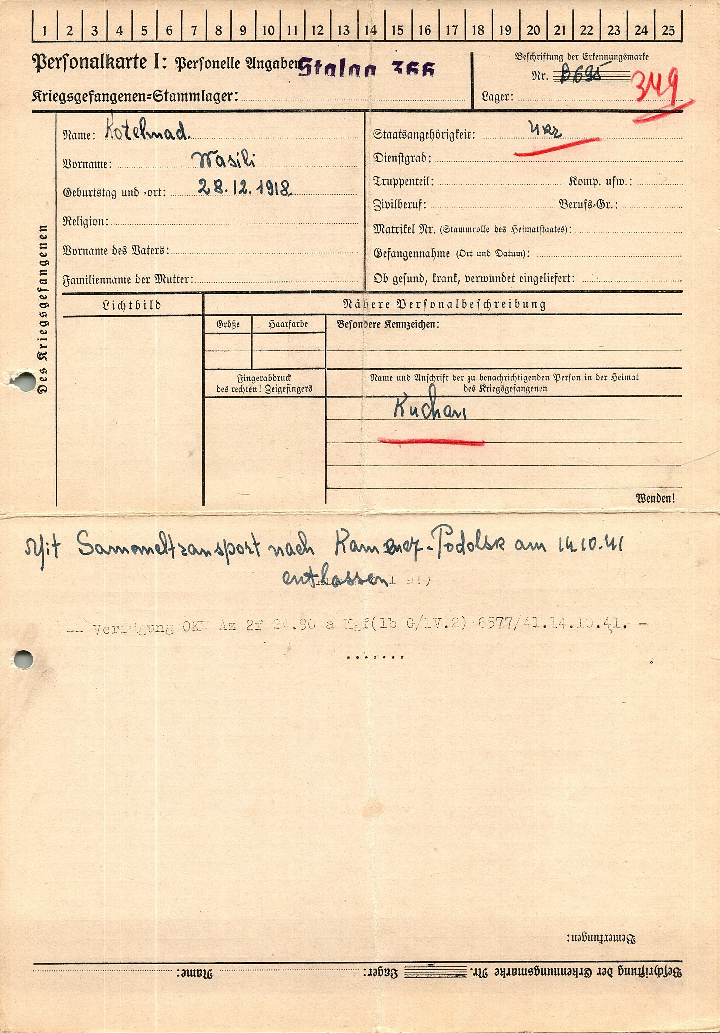 Военнопленные, трофейные карточки. Киевская обл.