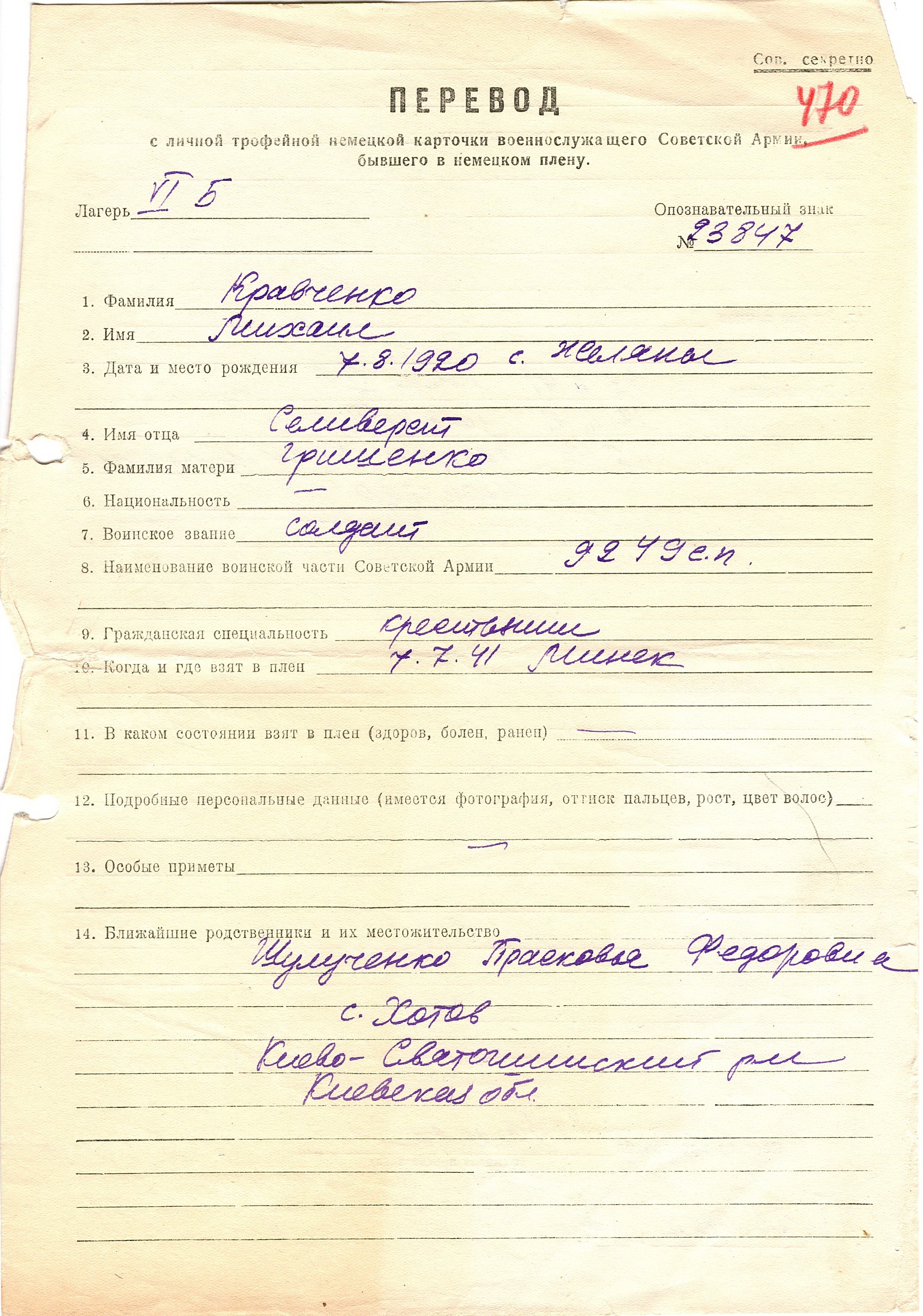 Военнопленные, трофейные карточки. Киевская обл.