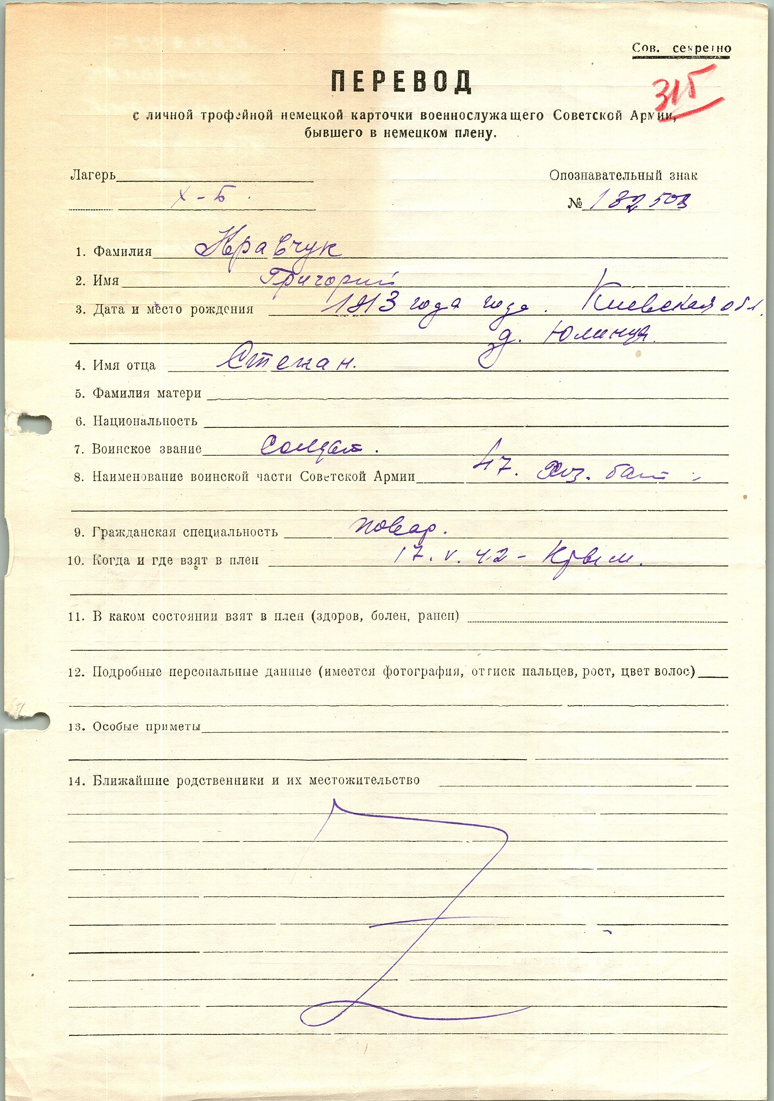 Военнопленные, трофейные карточки. Киевская обл.
