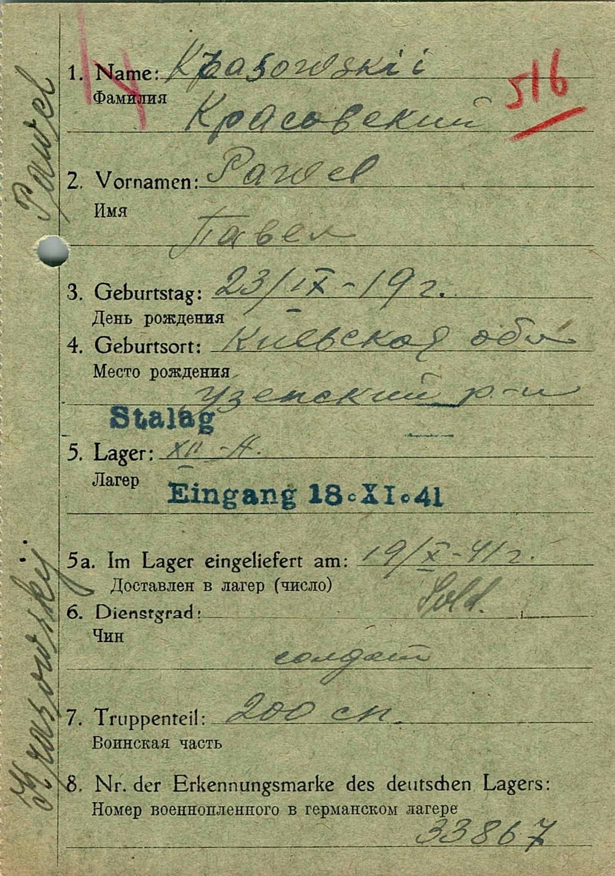 Военнопленные, трофейные карточки. Киевская обл.