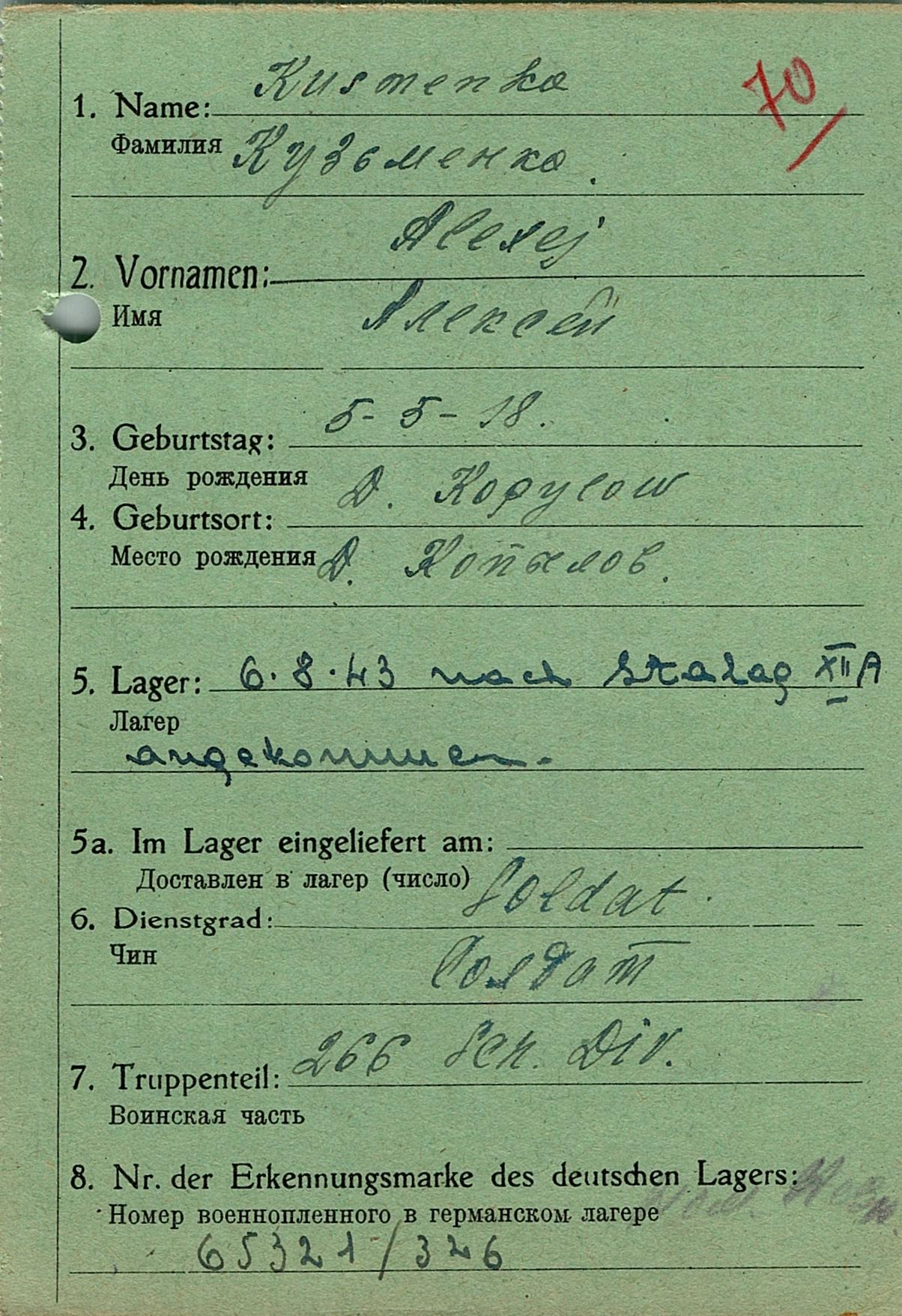 Военнопленные, трофейные карточки. Киевская обл.