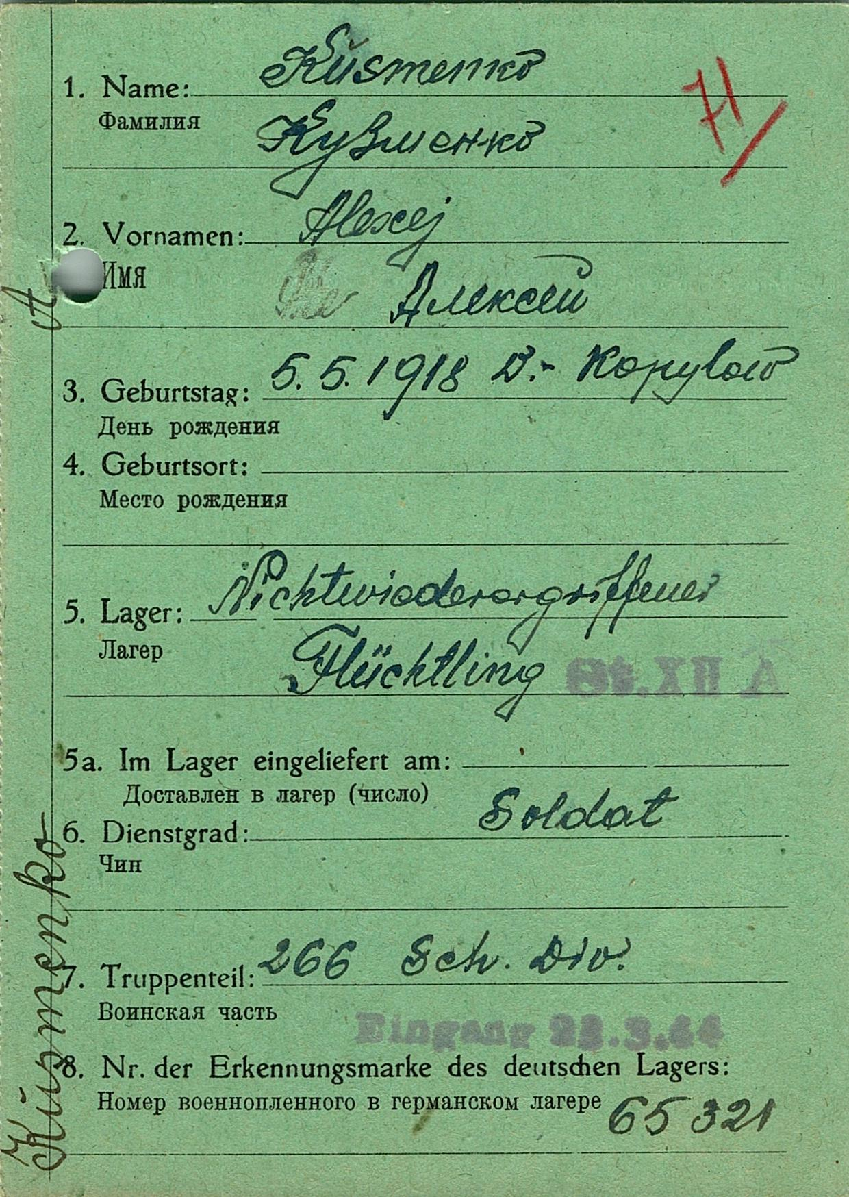 Военнопленные, трофейные карточки. Киевская обл.