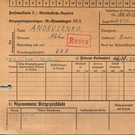 Военнопленные, трофейные карточки. Киевская обл.