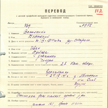 Военнопленные, трофейные карточки. Киевская обл.