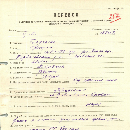 Военнопленные, трофейные карточки. Киевская обл.