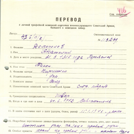 Военнопленные, трофейные карточки. Киевская обл.