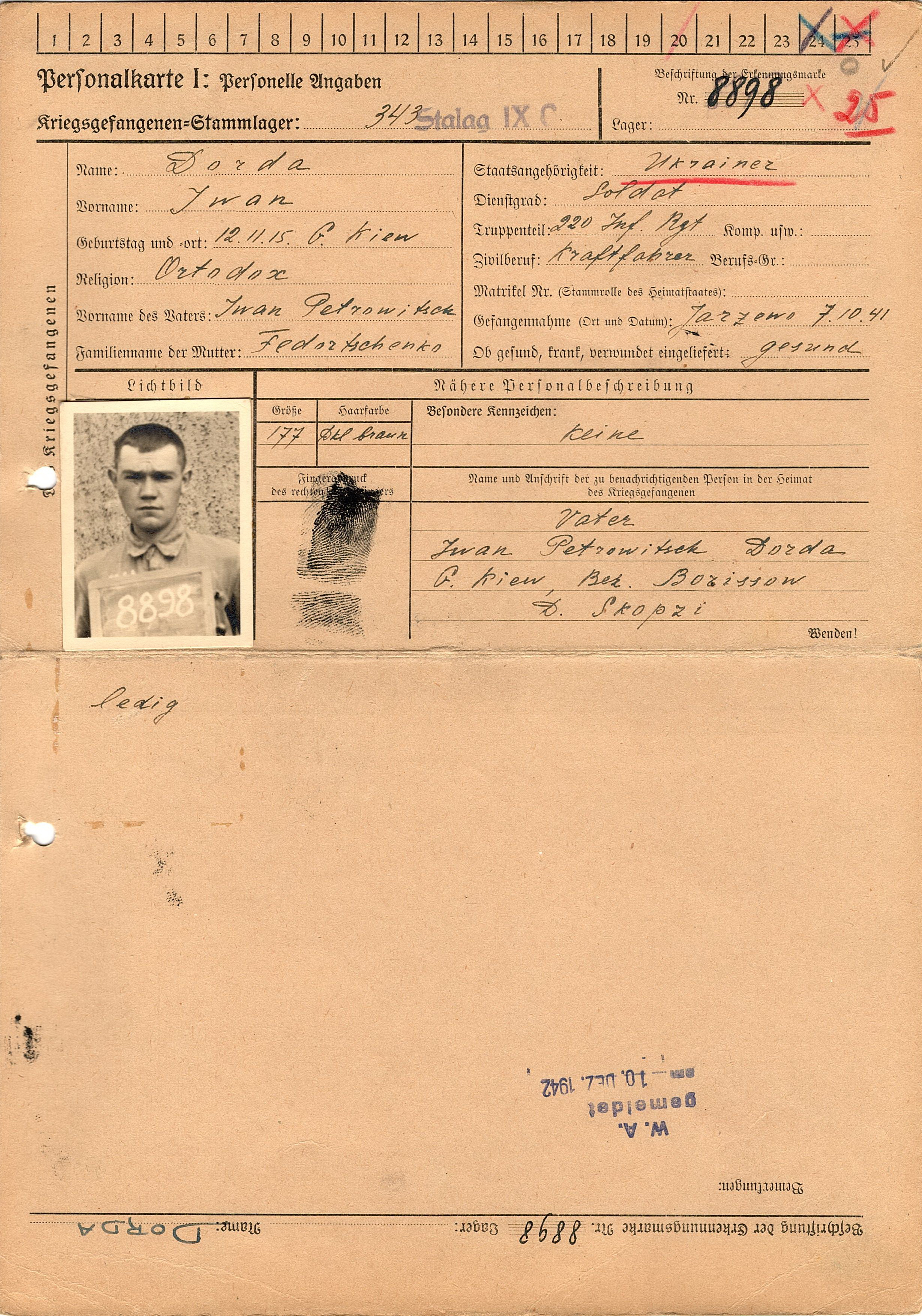 Военнопленные, трофейные карточки. Киевская обл.
