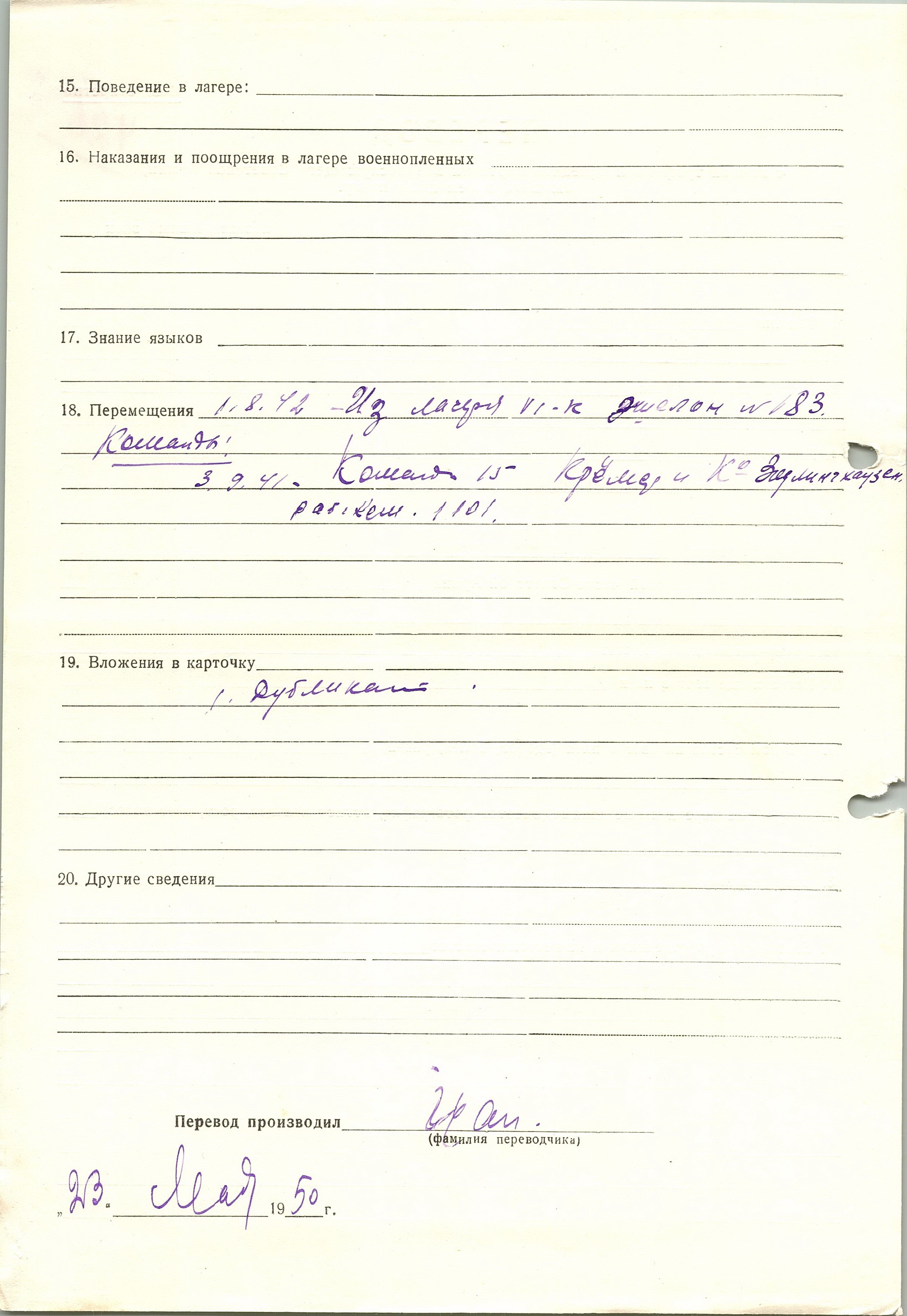 Военнопленные, трофейные карточки. Киевская обл.