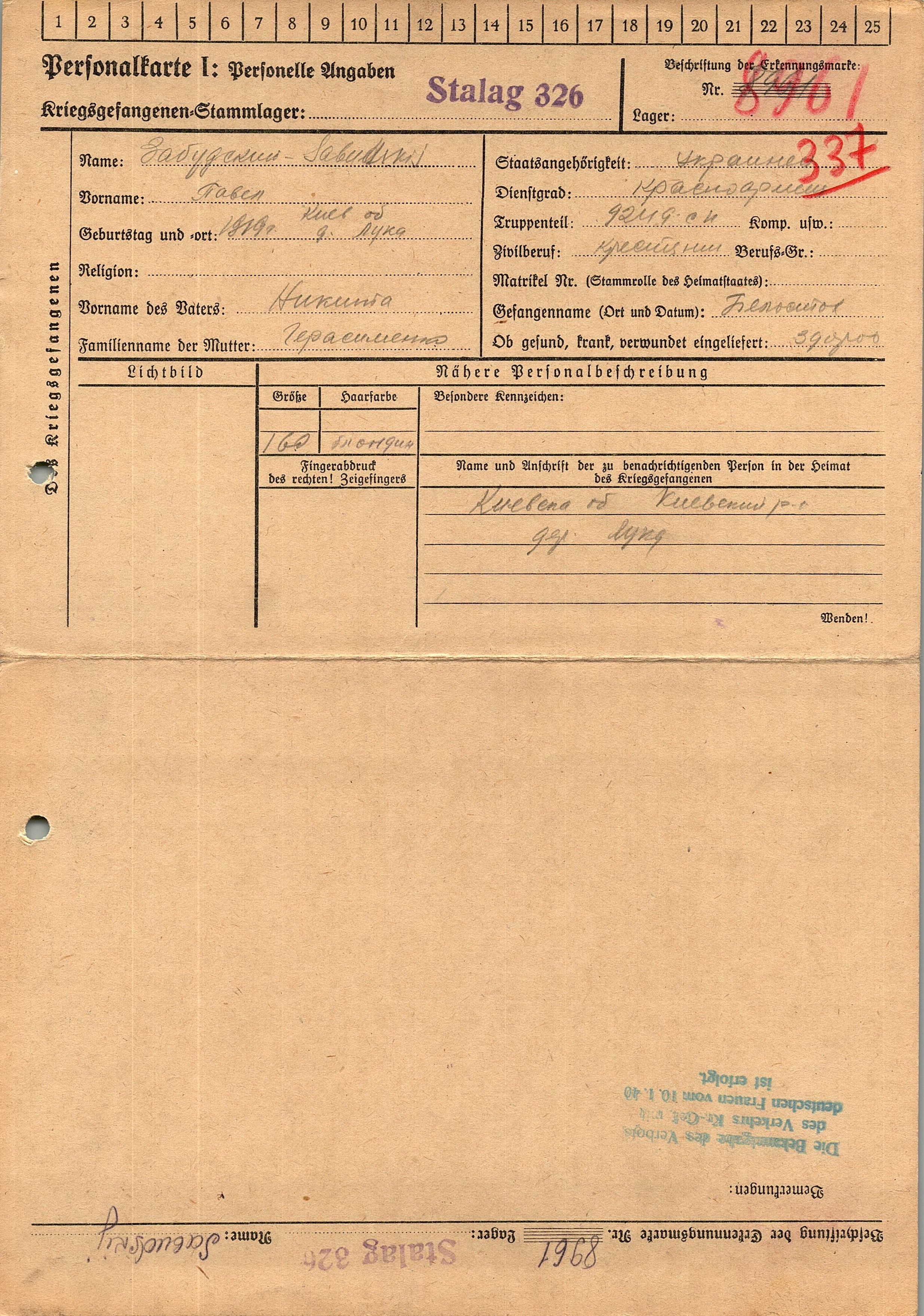 Военнопленные, трофейные карточки. Киевская обл.