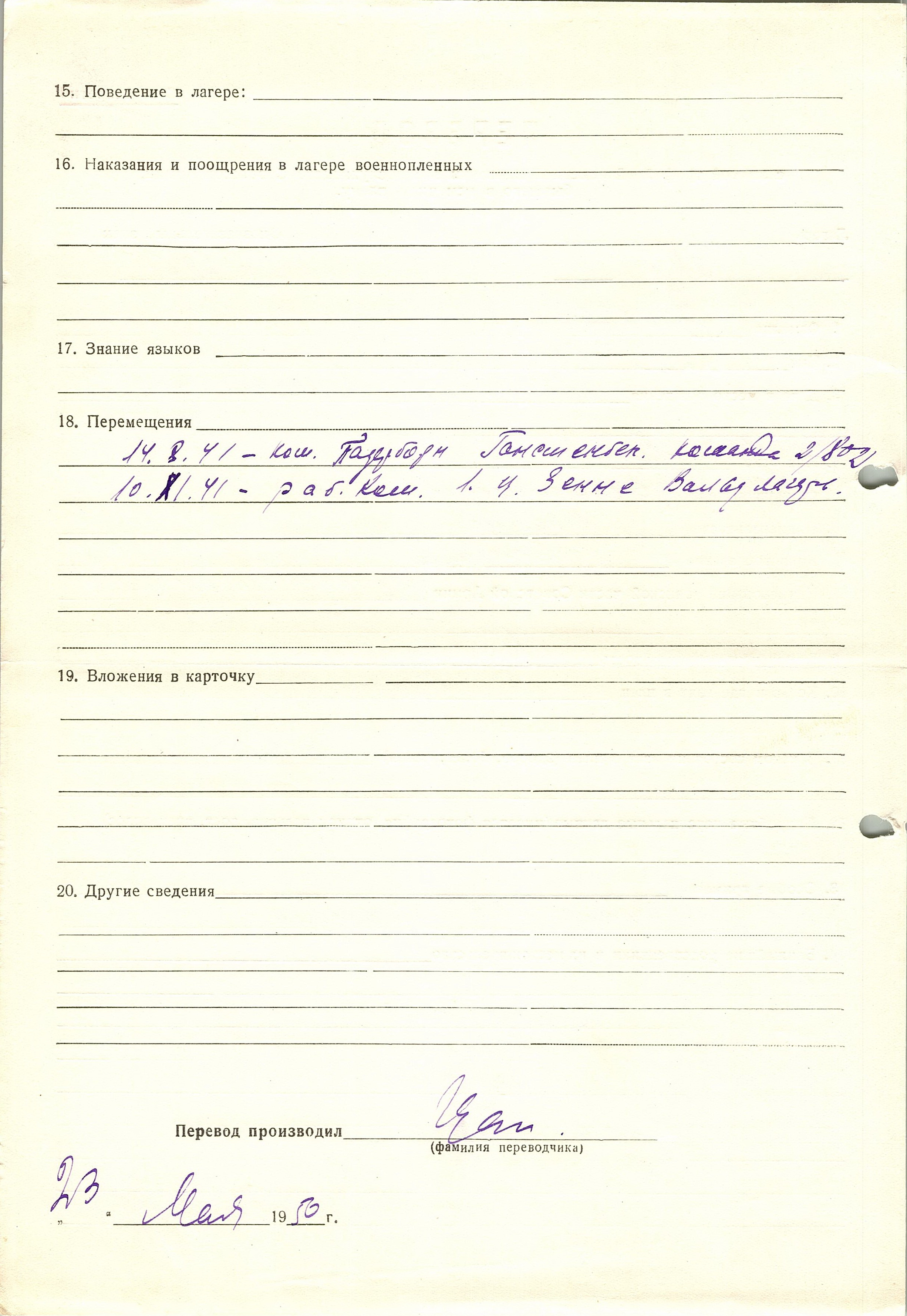 Военнопленные, трофейные карточки. Киевская обл.