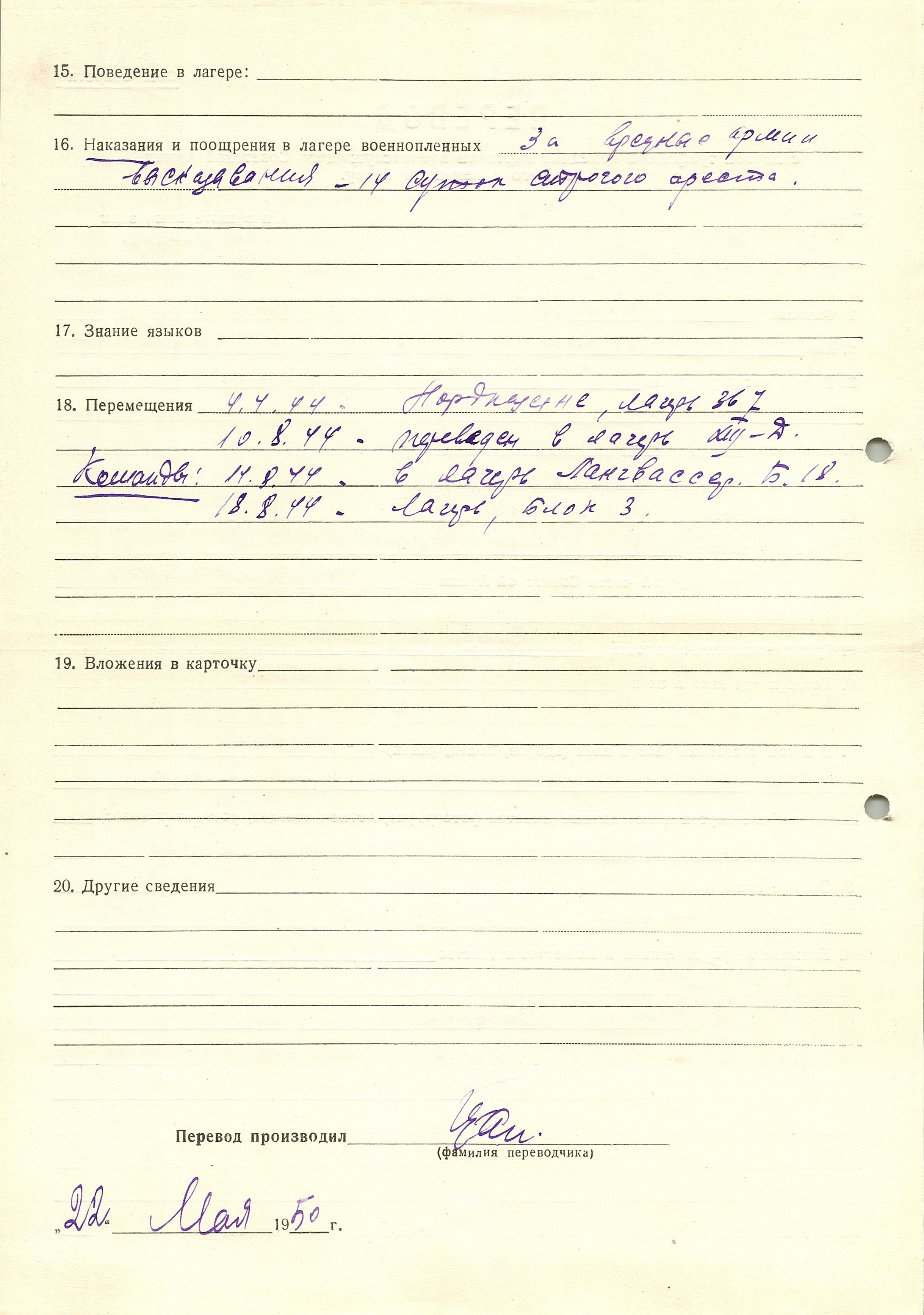 Военнопленные, трофейные карточки. Киевская обл.
