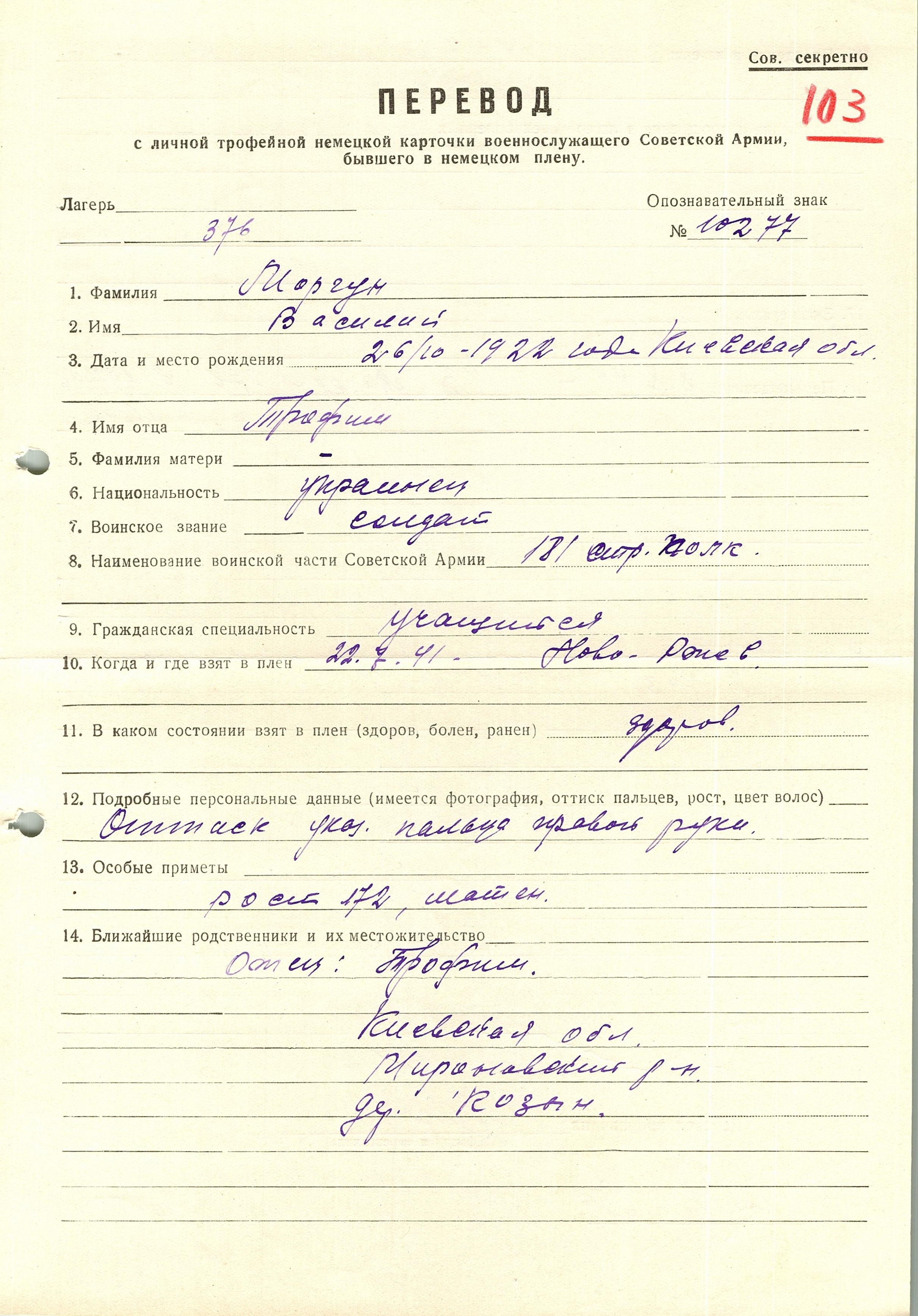 Военнопленные, трофейные карточки. Киевская обл.