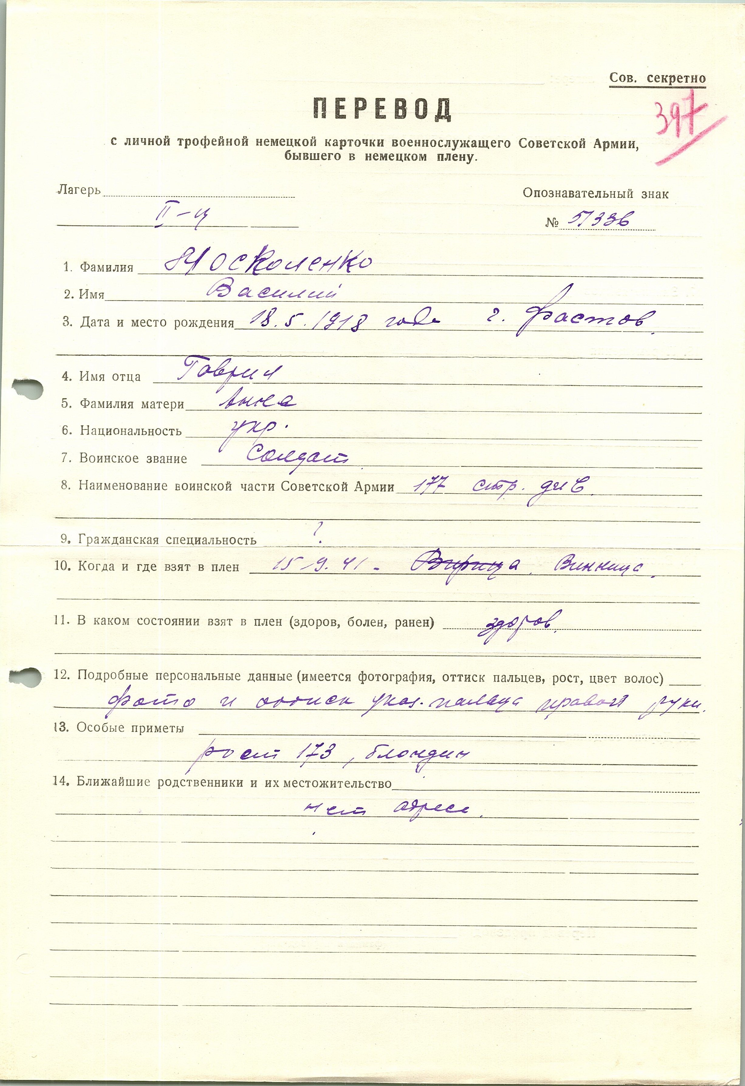 Военнопленные, трофейные карточки. Киевская обл.