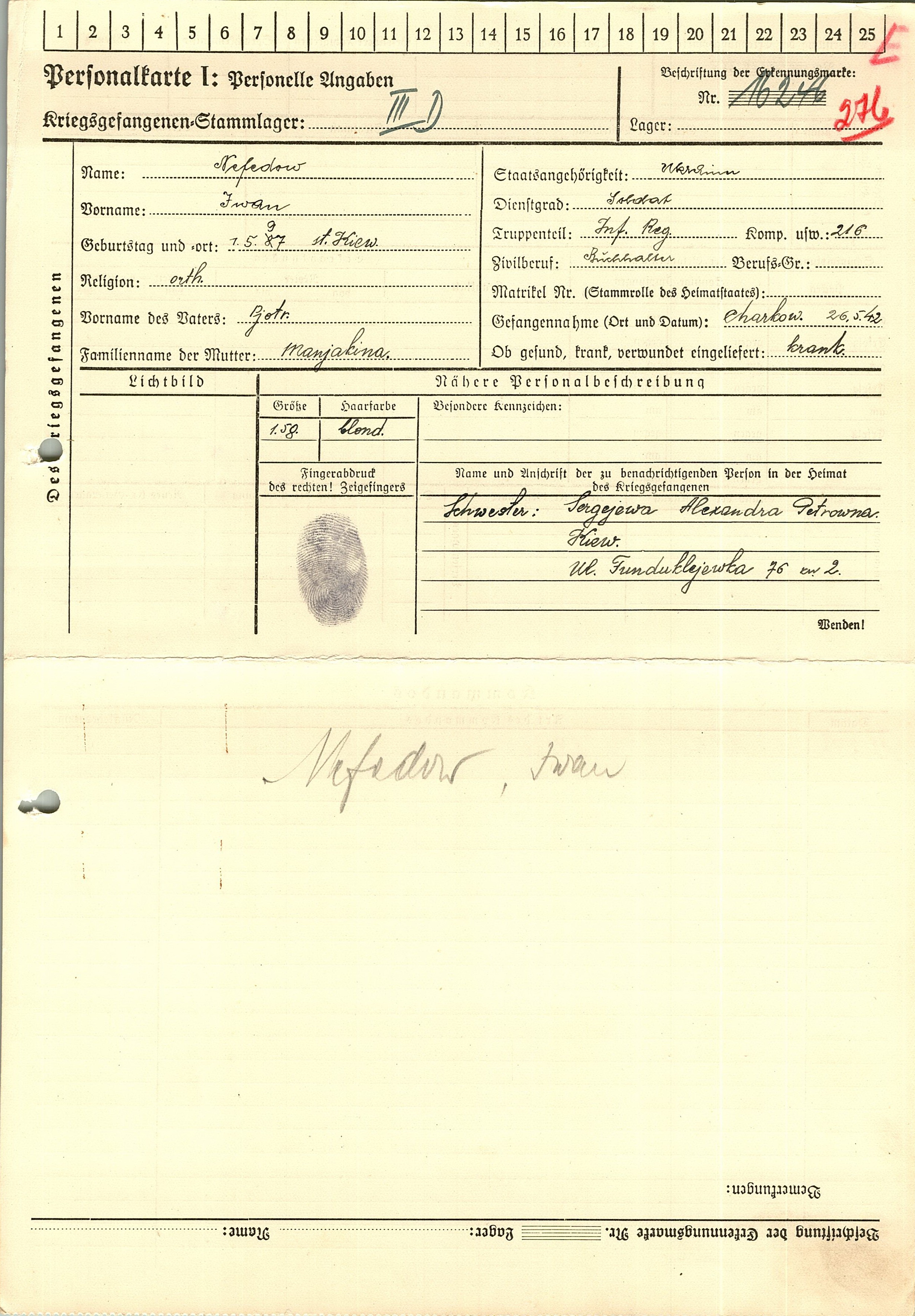 Военнопленные, трофейные карточки. Киевская обл.