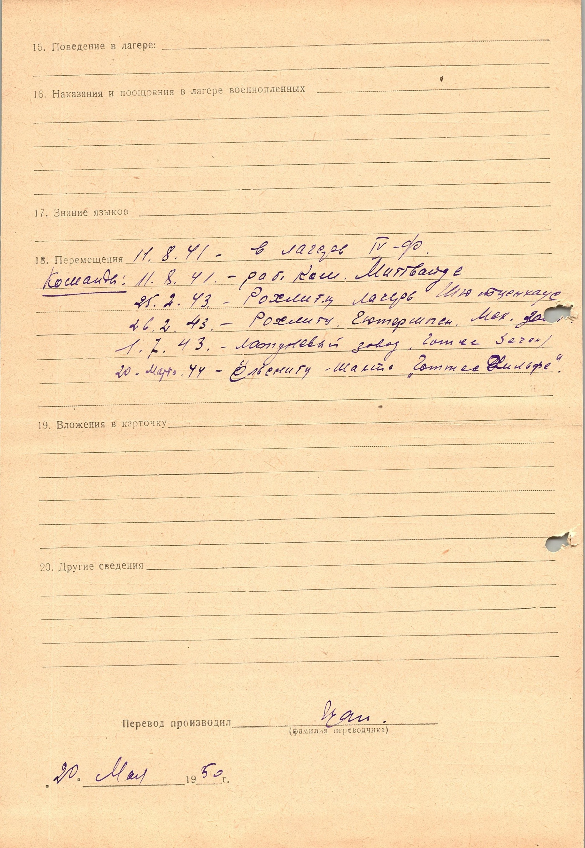 Военнопленные, трофейные карточки. Киевская обл.