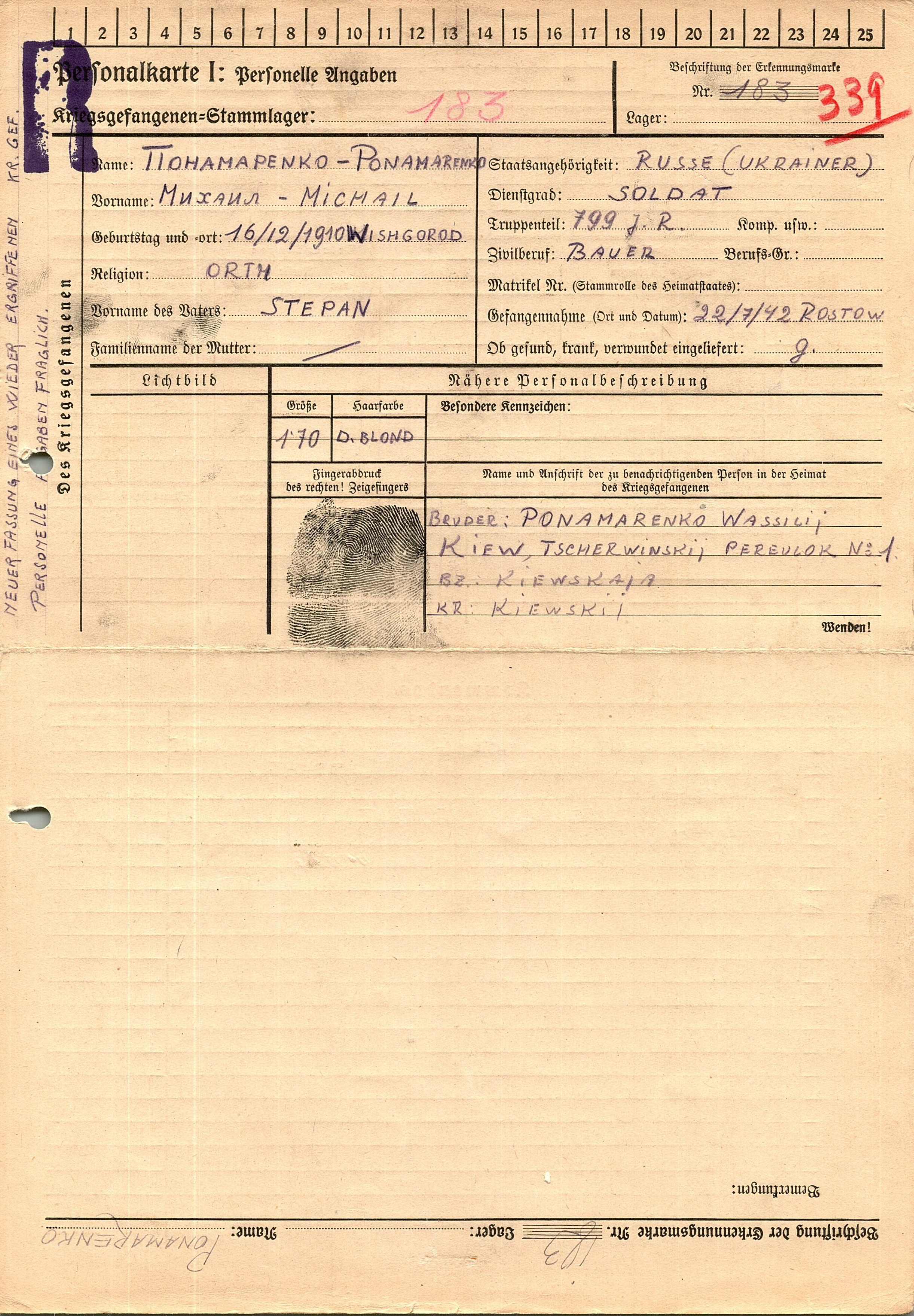 Военнопленные, трофейные карточки. Киевская обл.