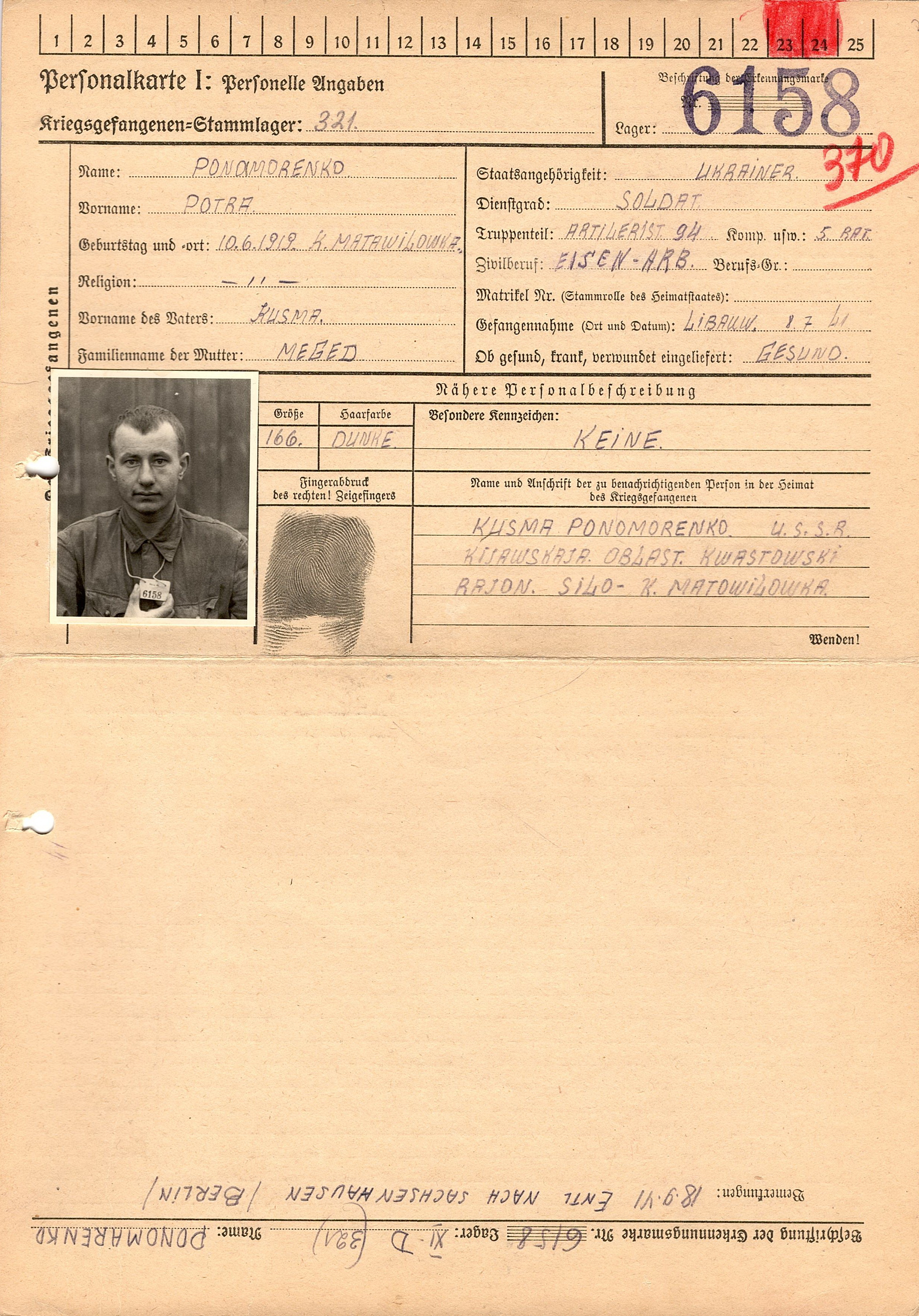 Военнопленные, трофейные карточки. Киевская обл.