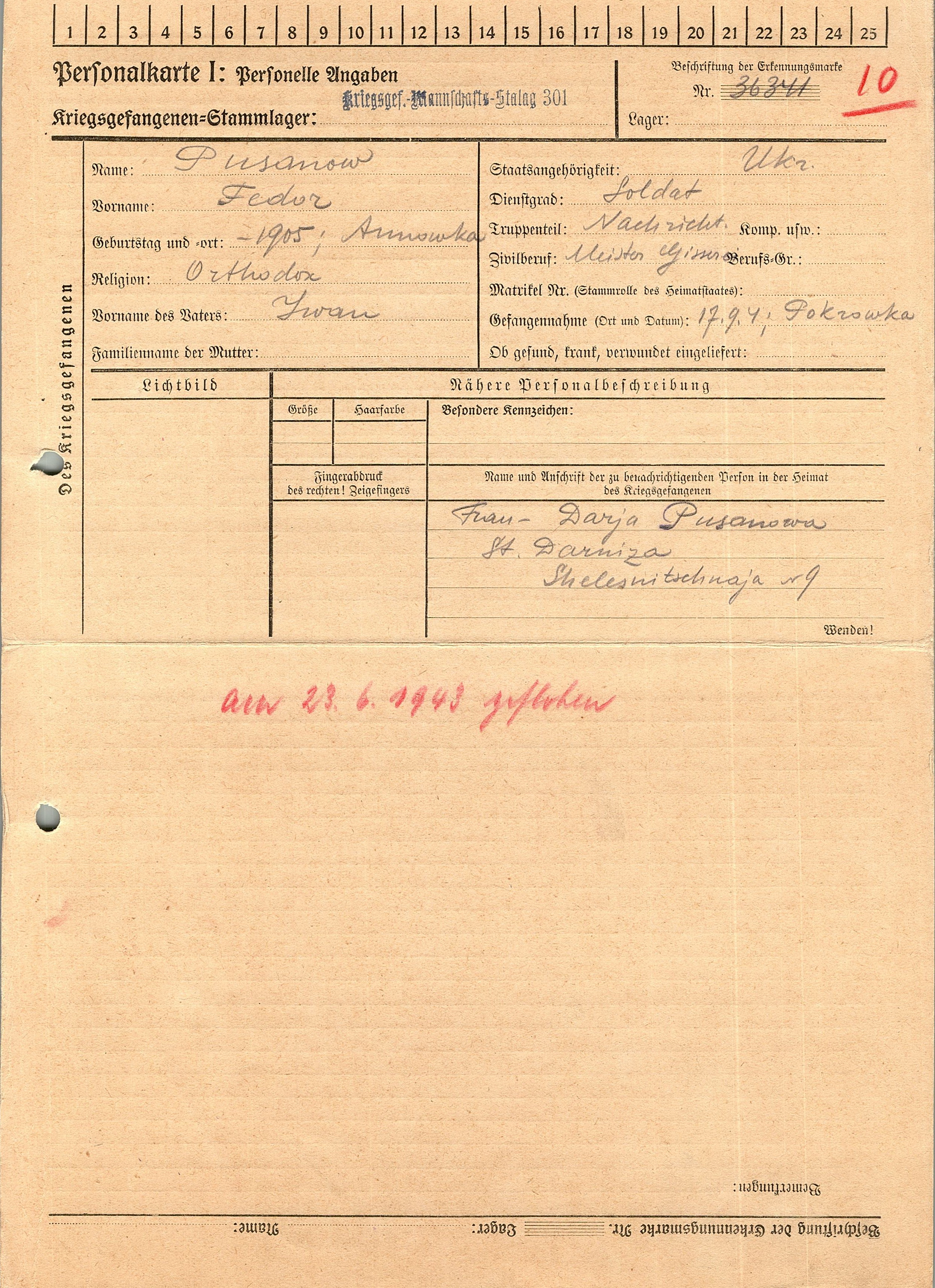 Военнопленные, трофейные карточки. Киевская обл.