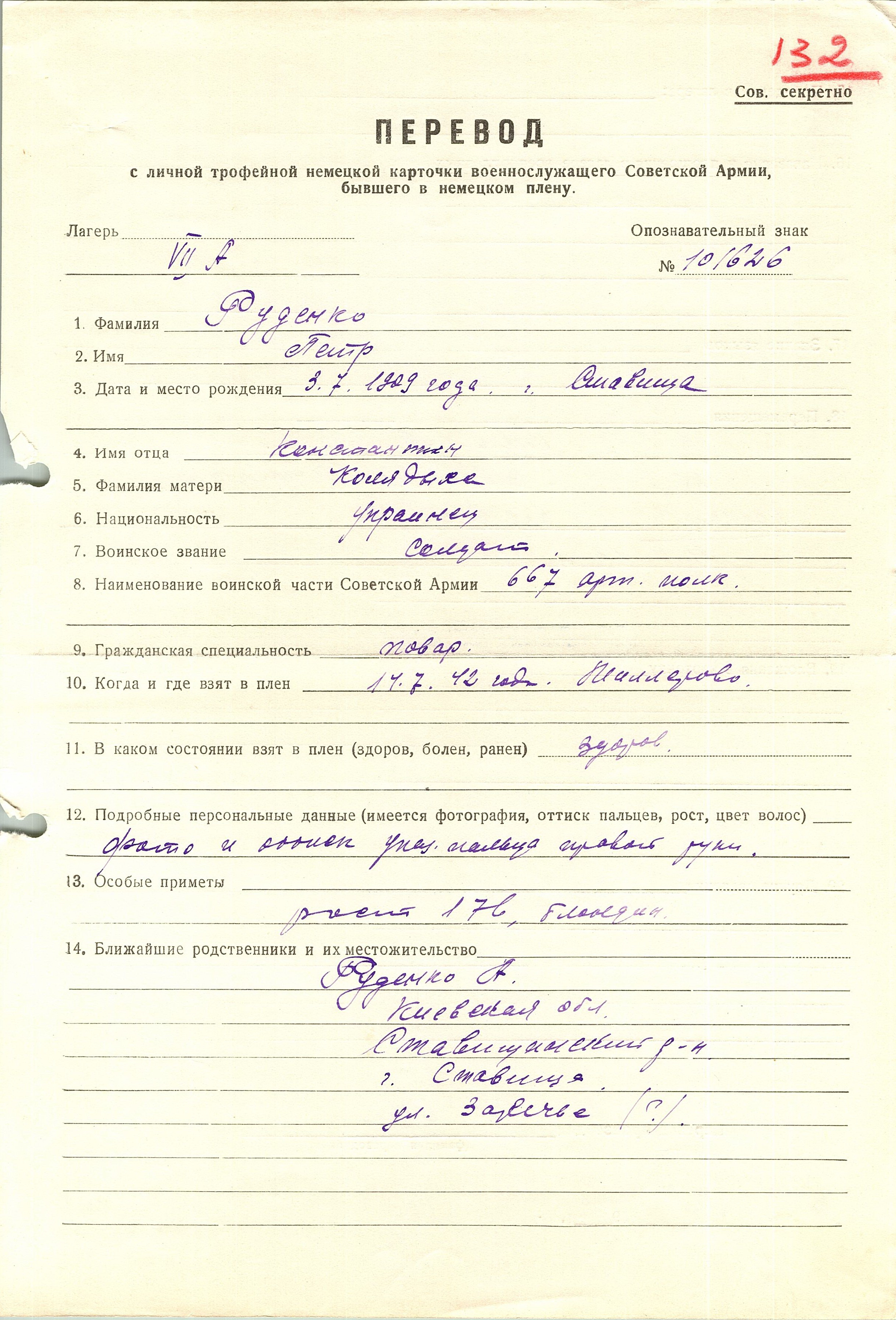 Военнопленные, трофейные карточки. Киевская обл.