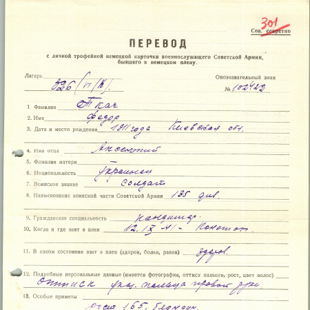 Военнопленные, трофейные карточки. Киевская обл.