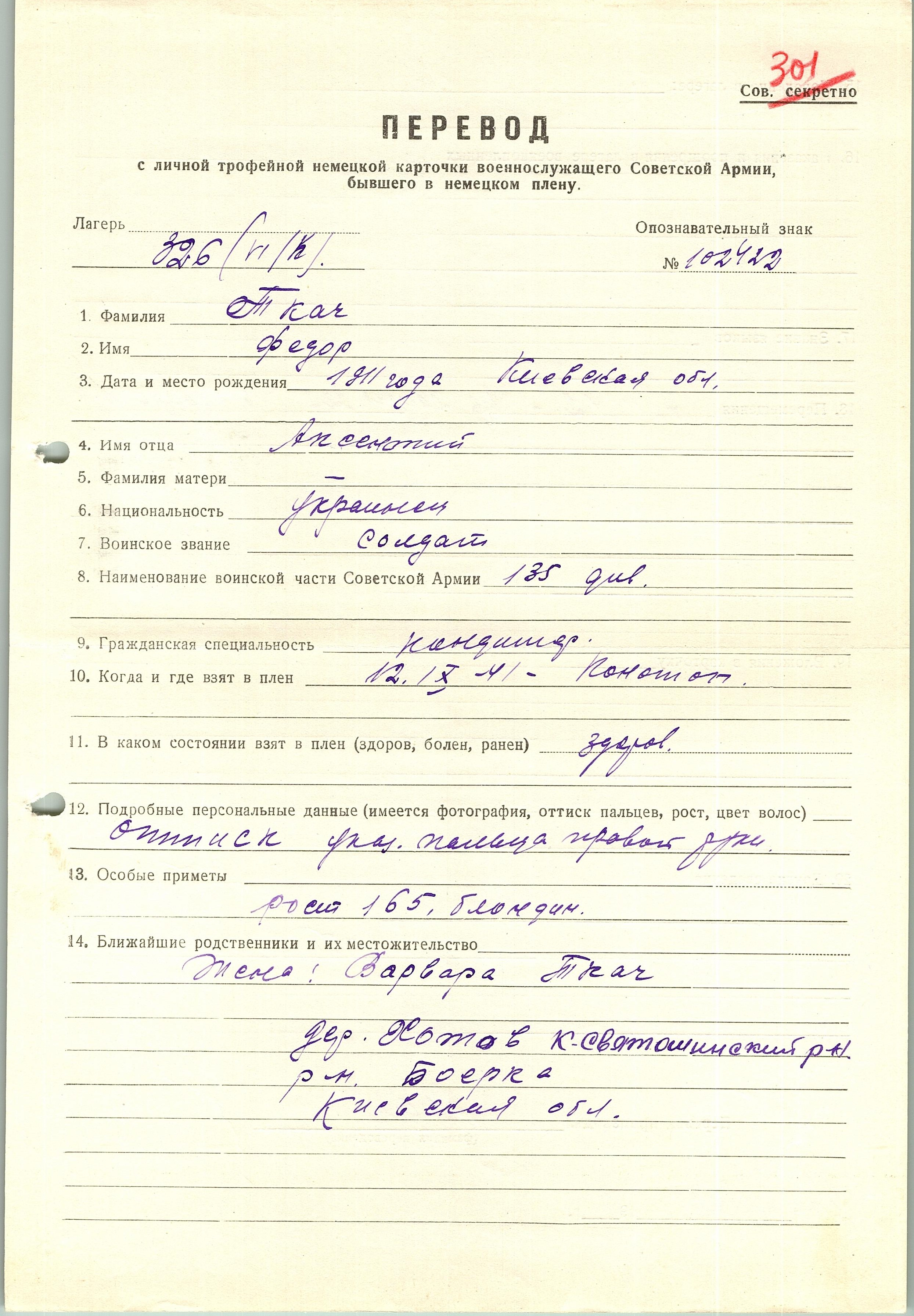 Военнопленные, трофейные карточки. Киевская обл.