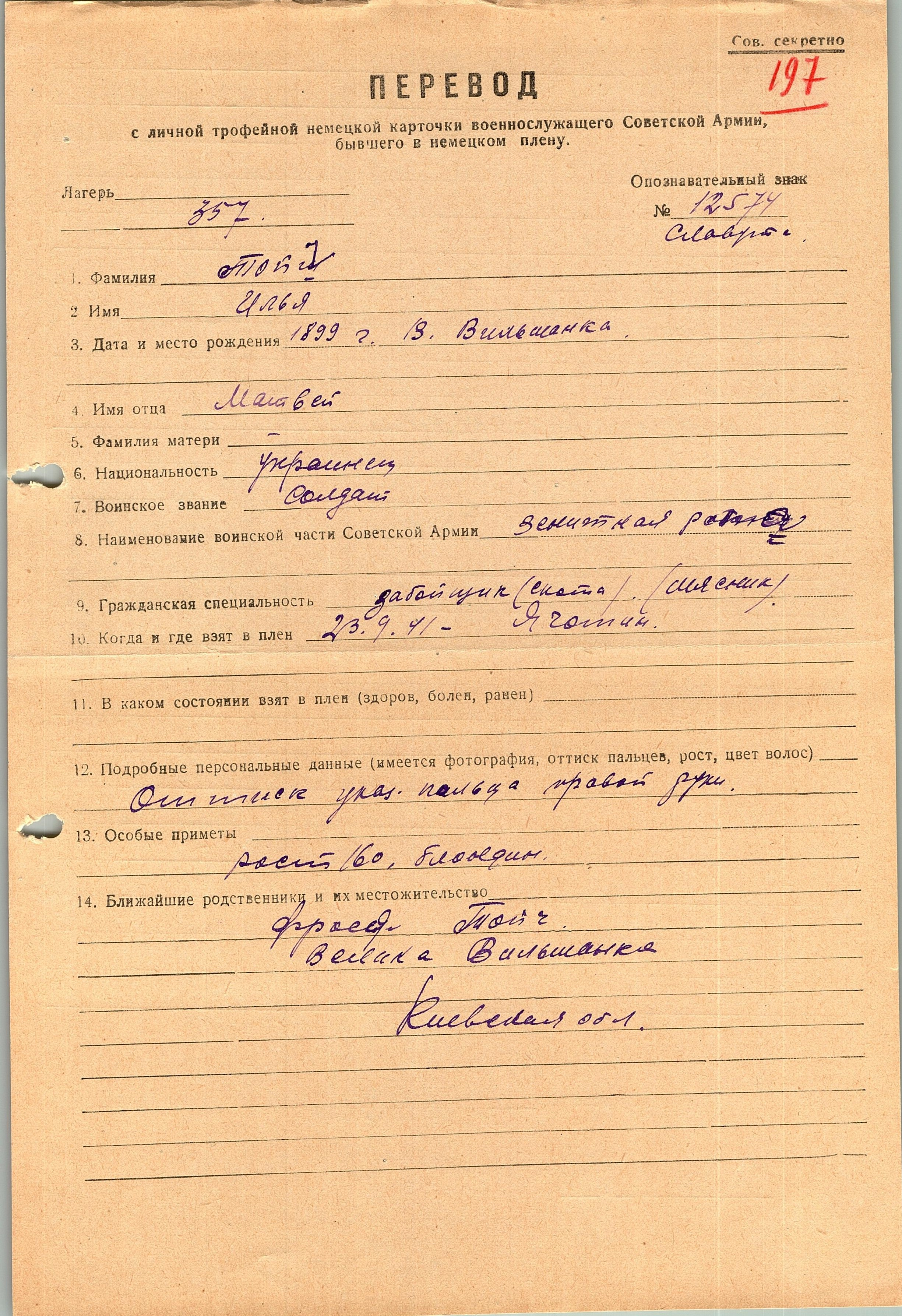 Военнопленные, трофейные карточки. Киевская обл.
