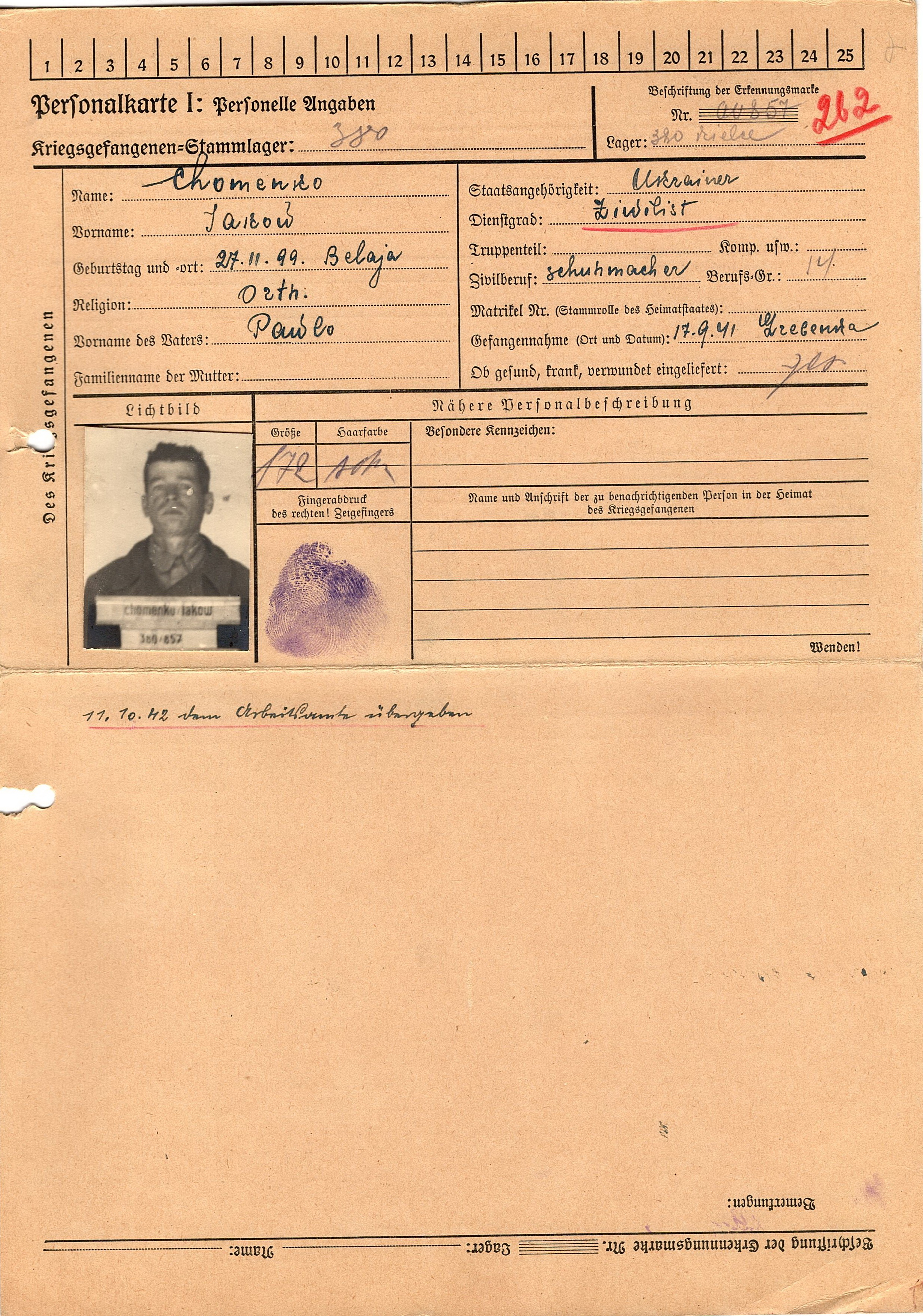 Военнопленные, трофейные карточки. Киевская обл.
