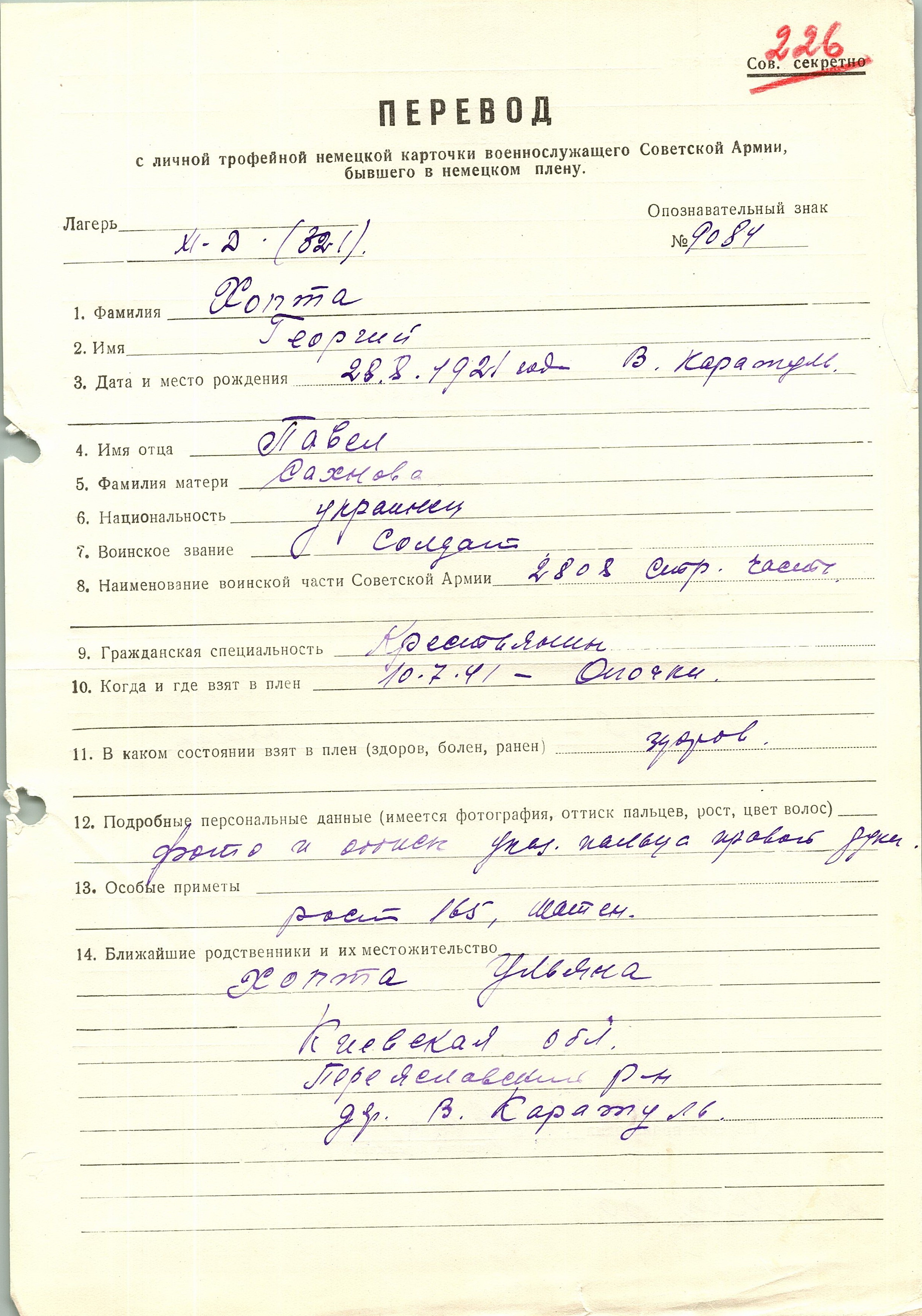 Военнопленные, трофейные карточки. Киевская обл.