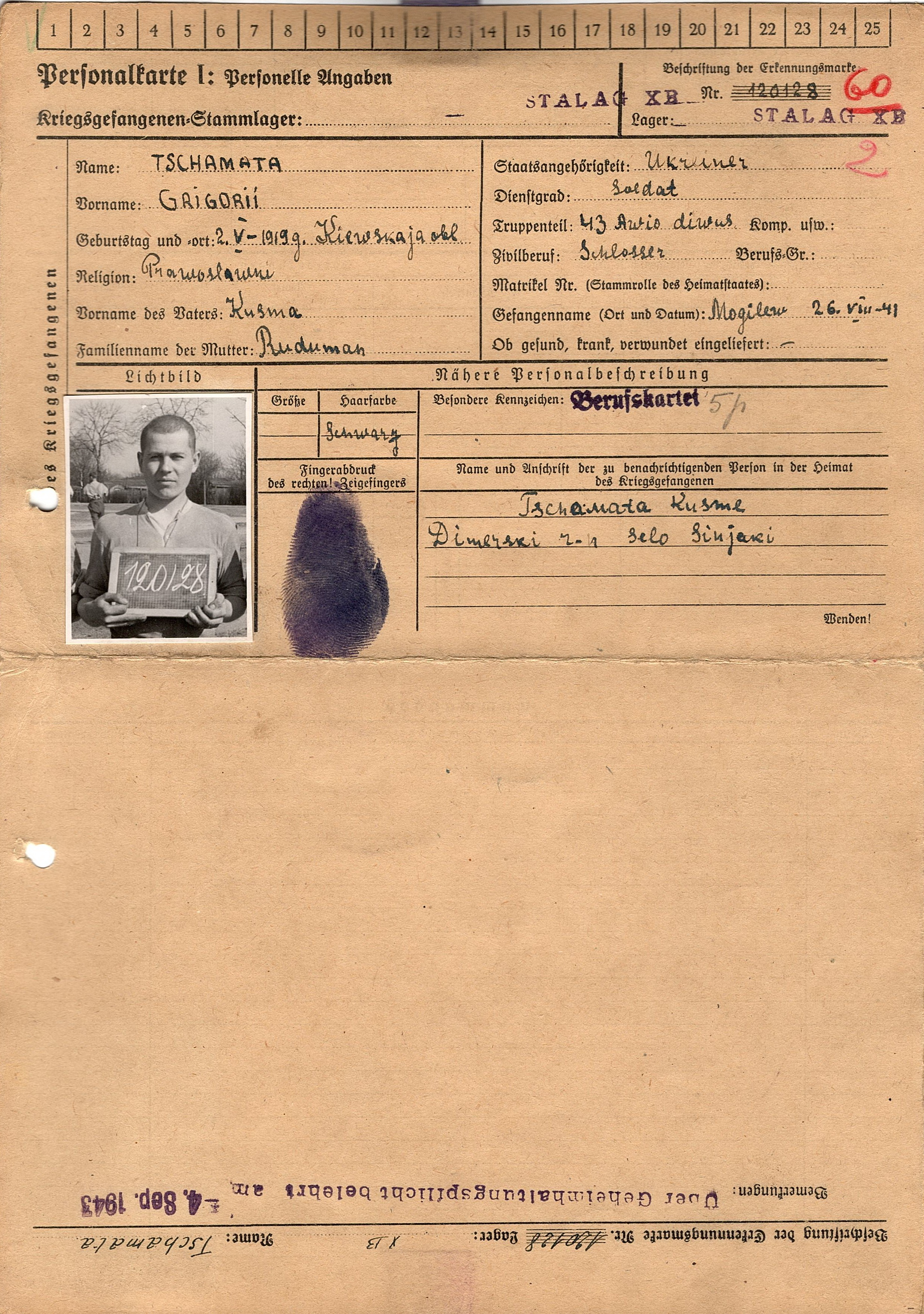 Военнопленные, трофейные карточки. Киевская обл.