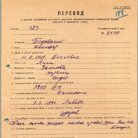 Военнопленные, трофейные карточки. Киевская обл.