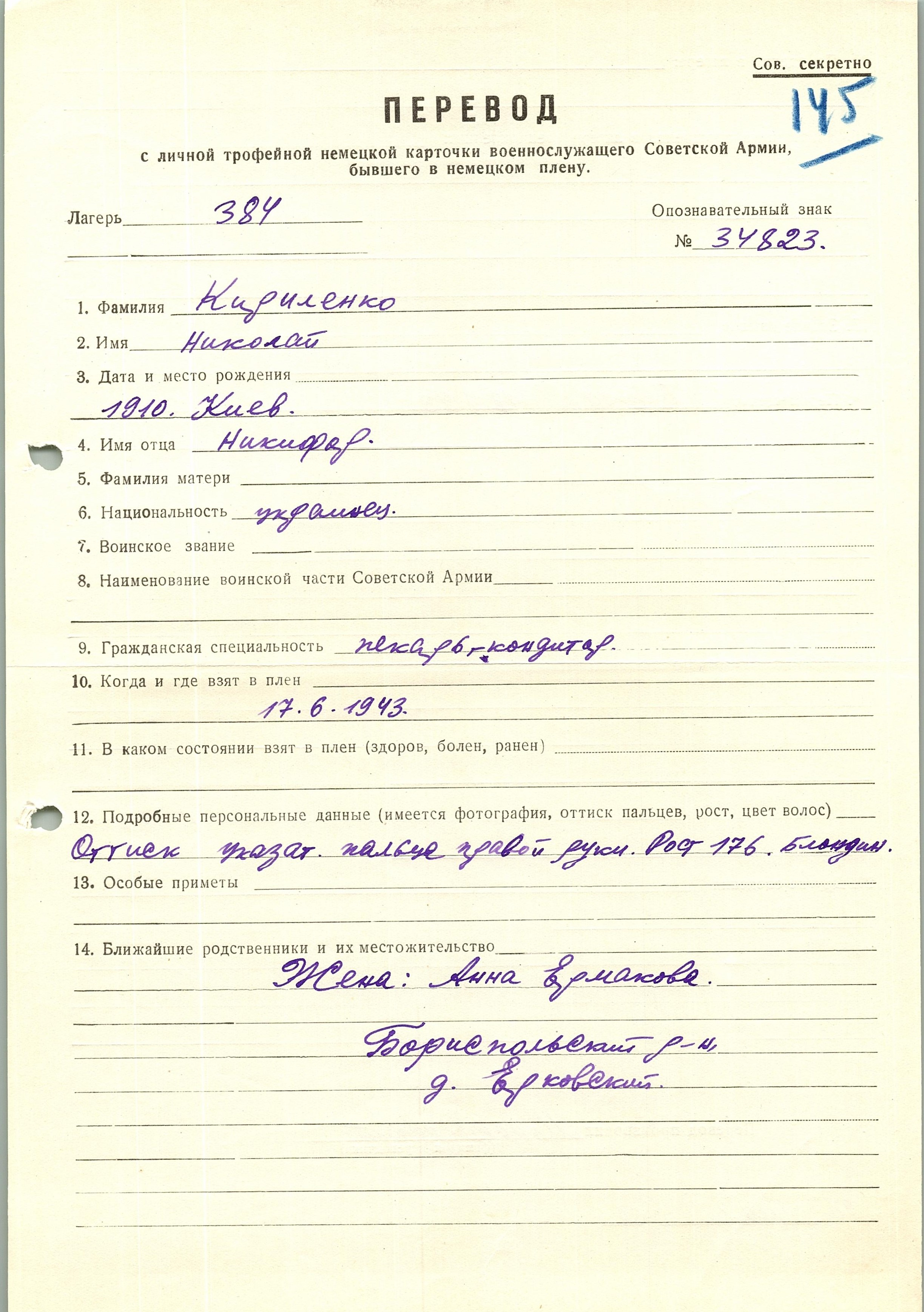 Военнопленные, трофейные карточки. Киевская обл.