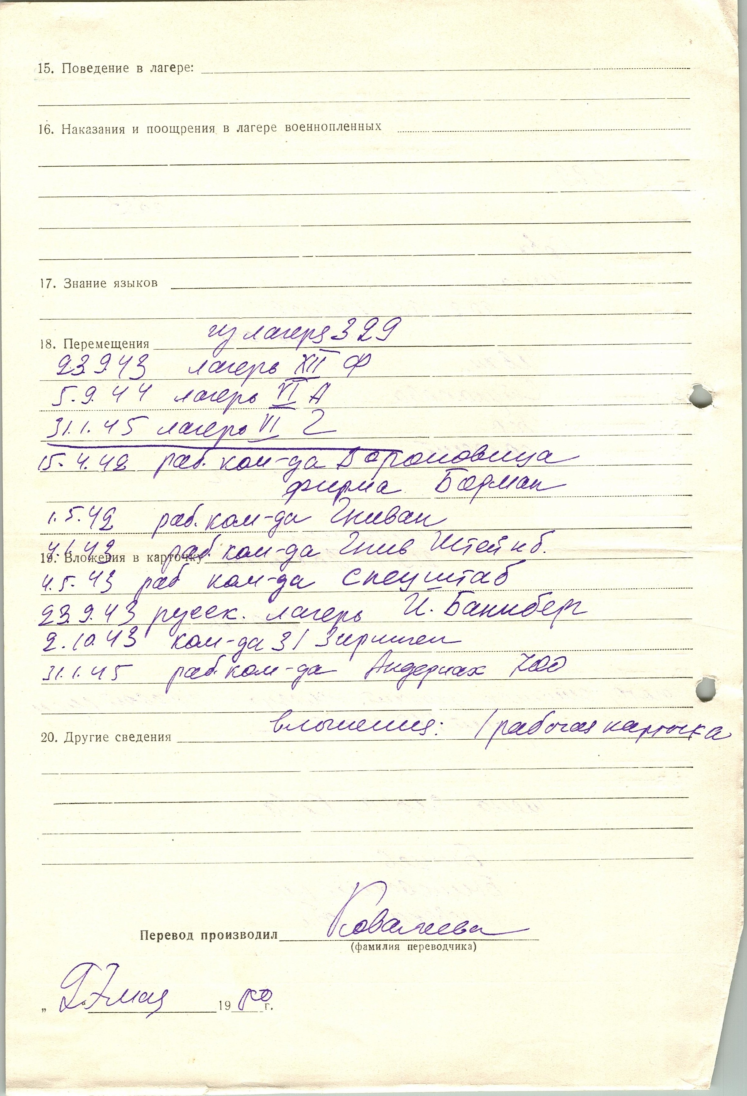 Военнопленные, трофейные карточки. Киевская обл.