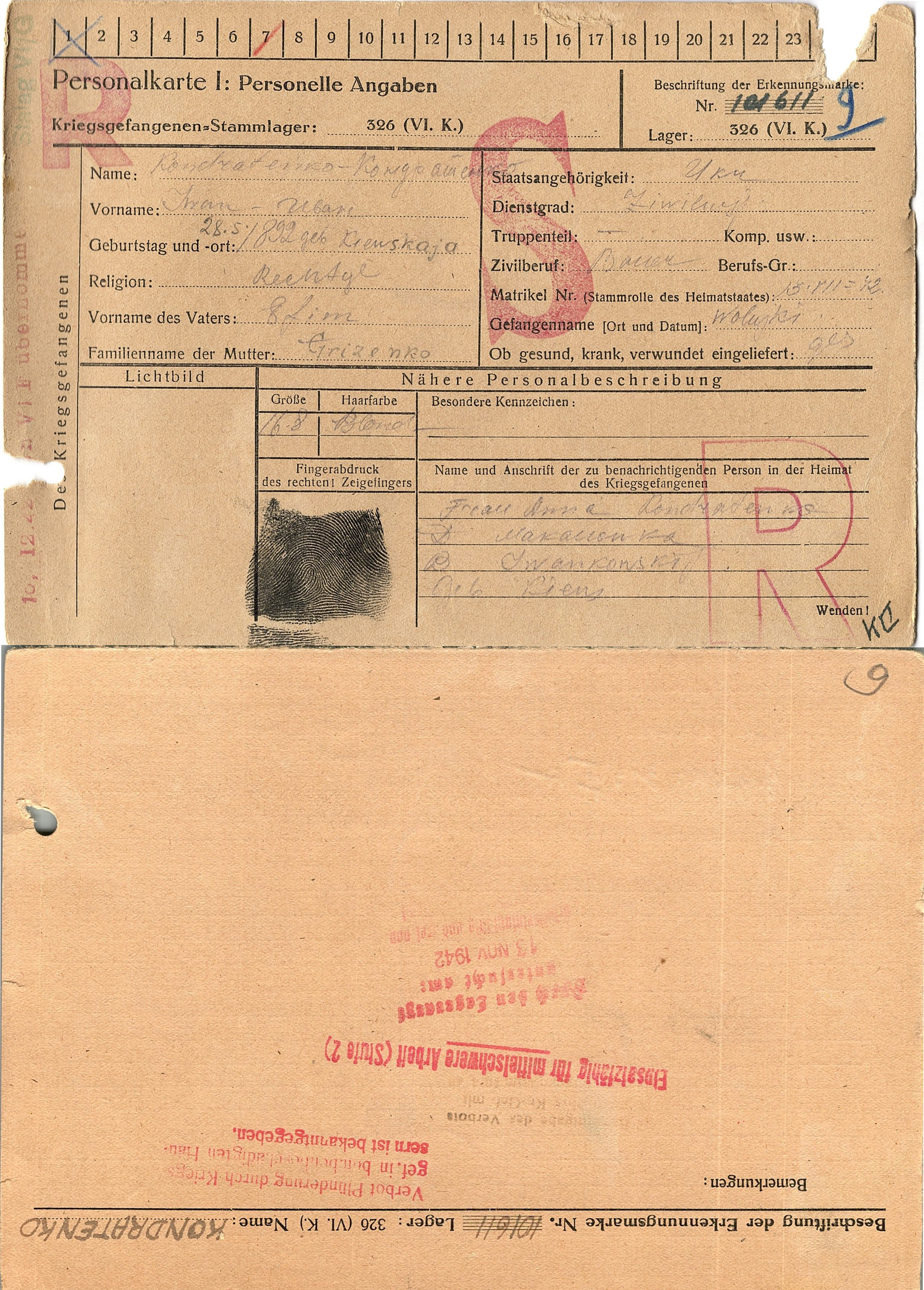 Военнопленные, трофейные карточки. Киевская обл.