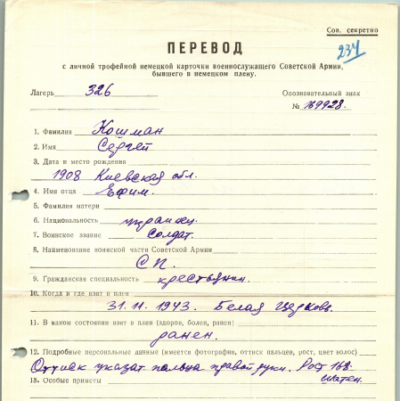 Военнопленные, трофейные карточки. Киевская обл.