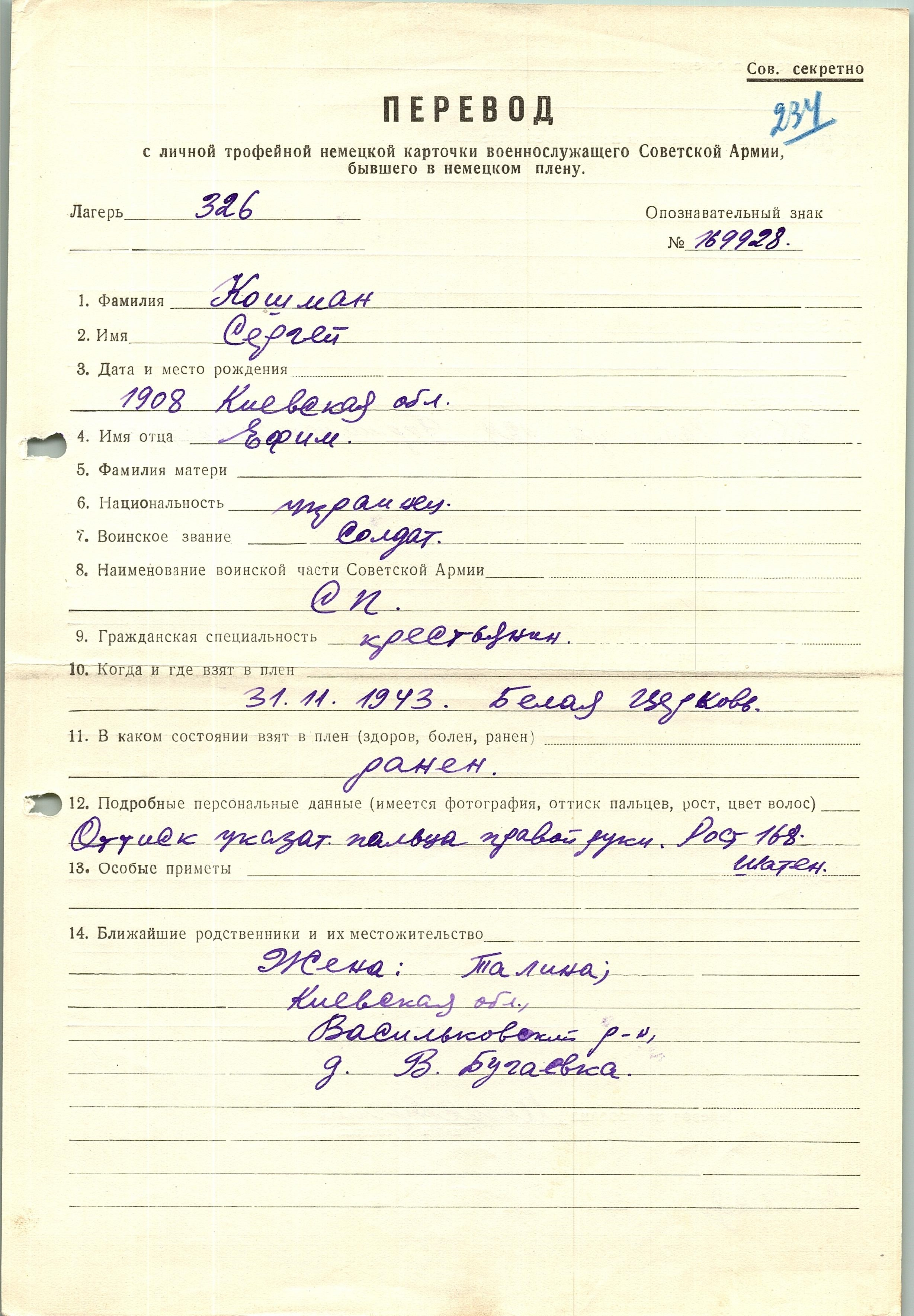 Военнопленные, трофейные карточки. Киевская обл.