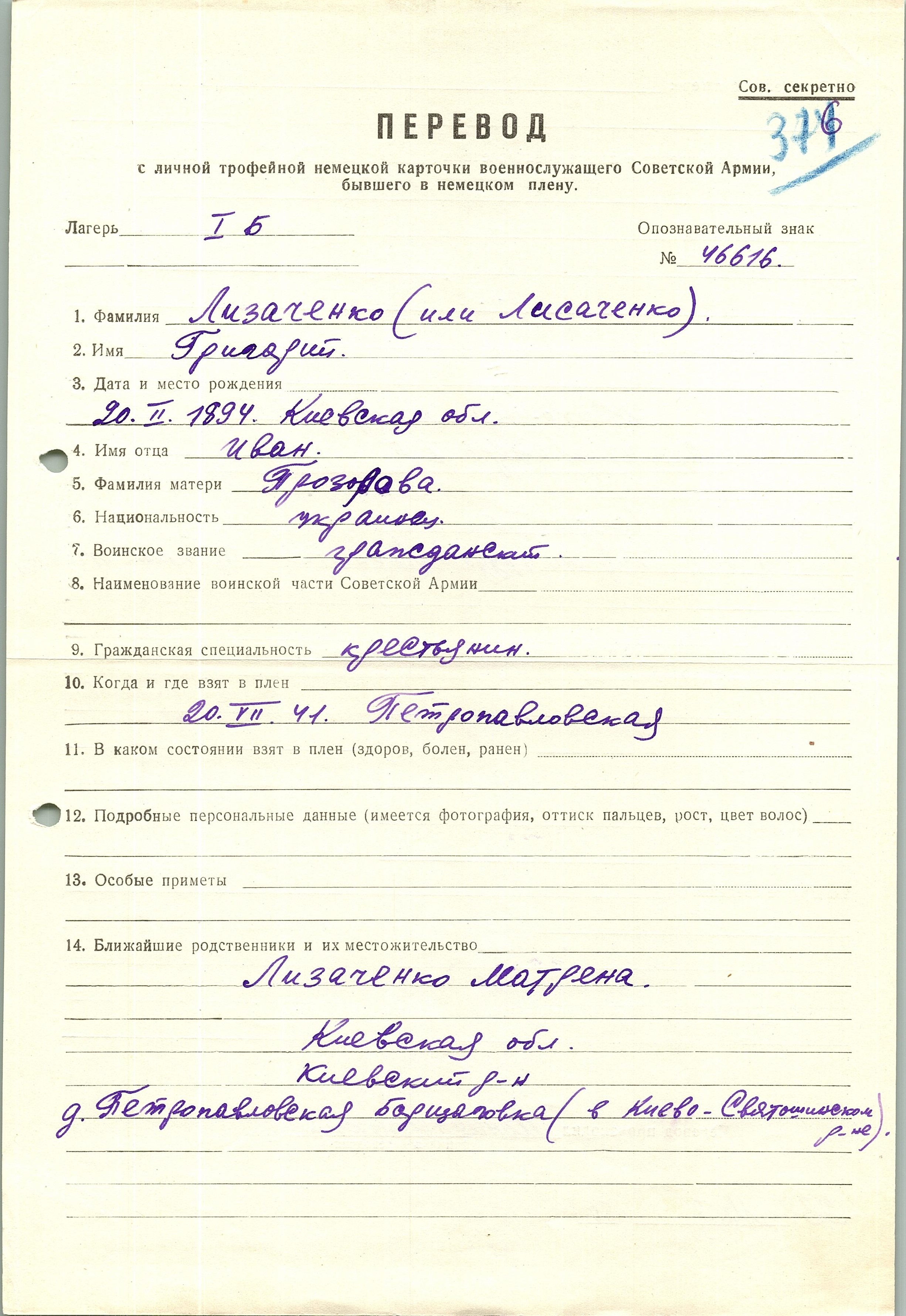 Военнопленные, трофейные карточки. Киевская обл.