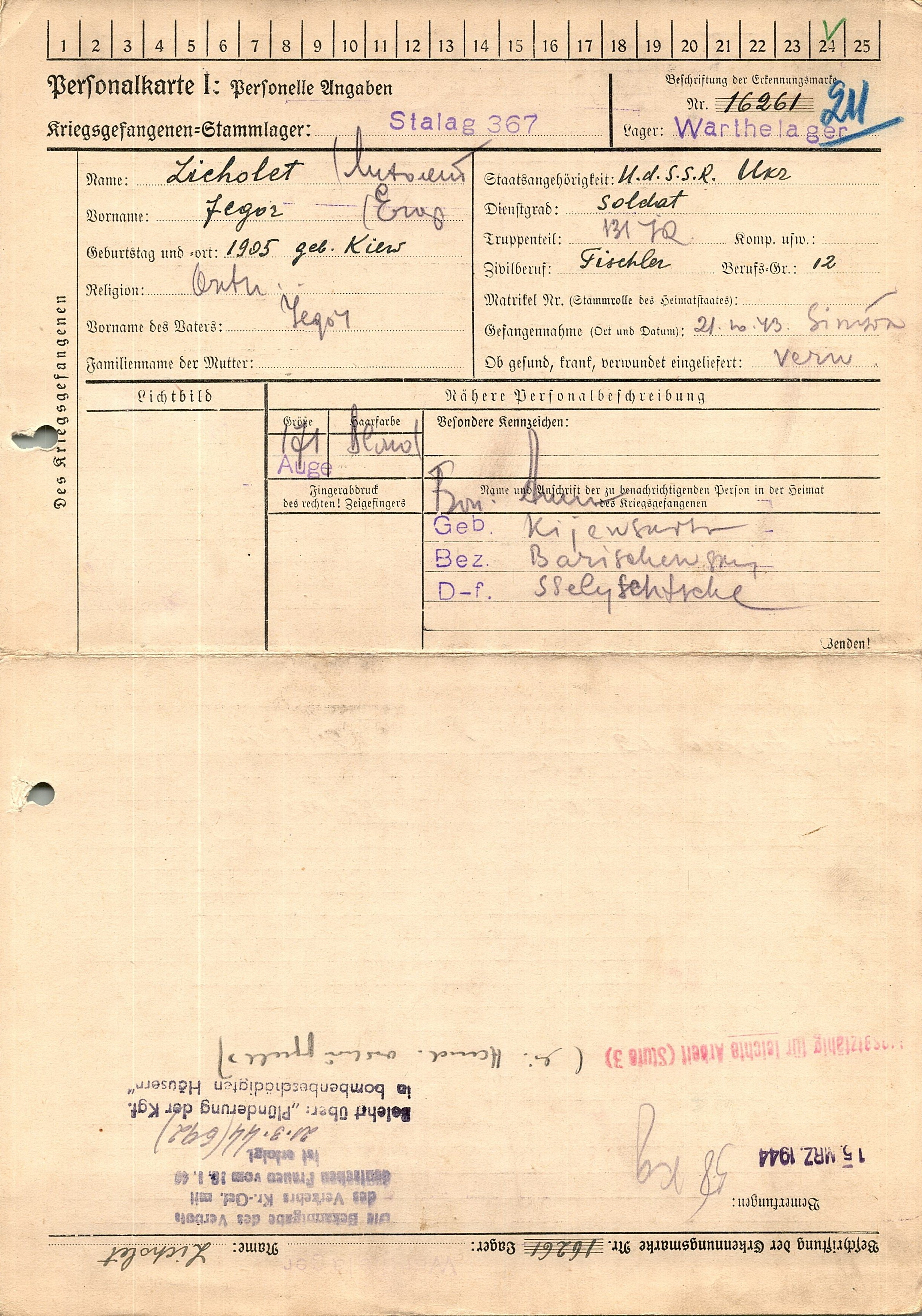 Военнопленные, трофейные карточки. Киевская обл.