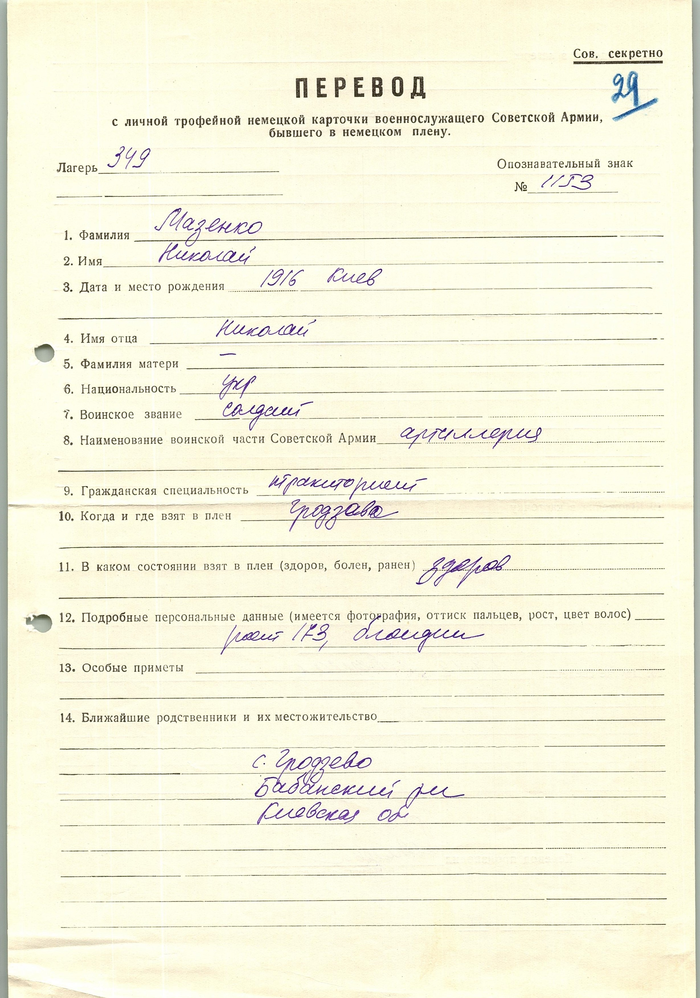 Военнопленные, трофейные карточки. Киевская обл.