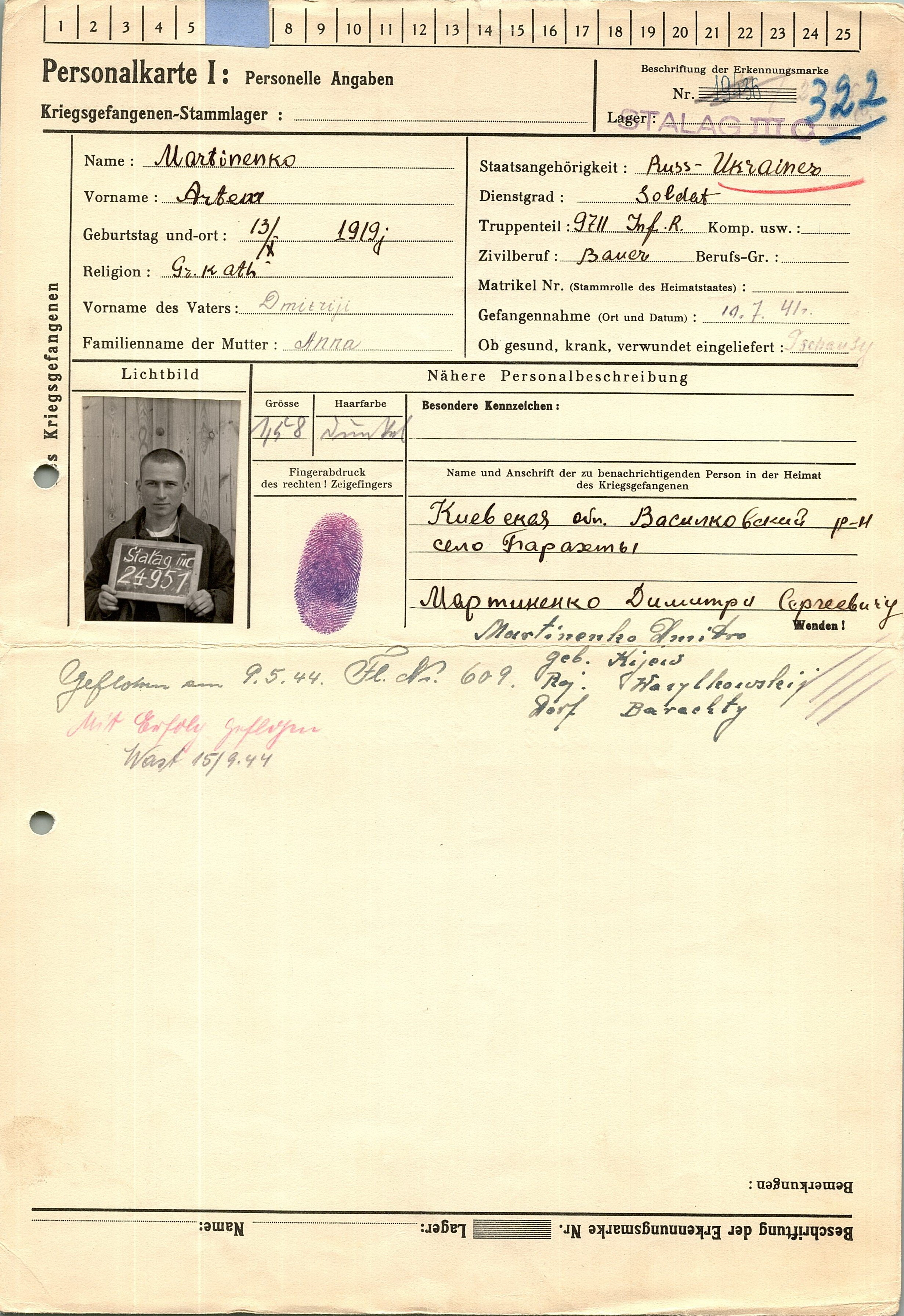 Военнопленные, трофейные карточки. Киевская обл.